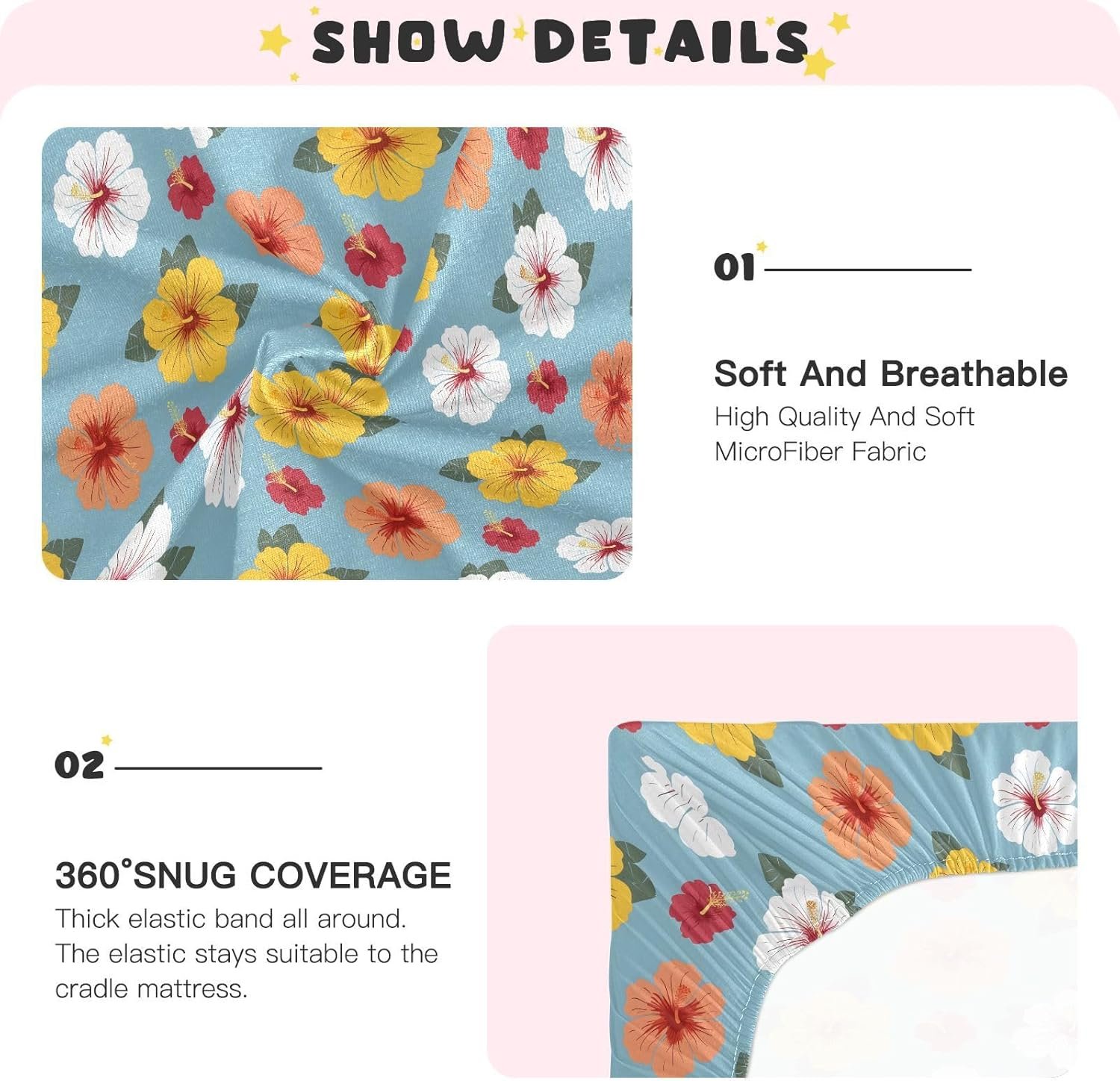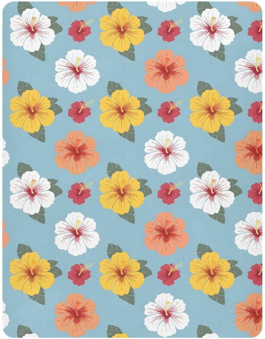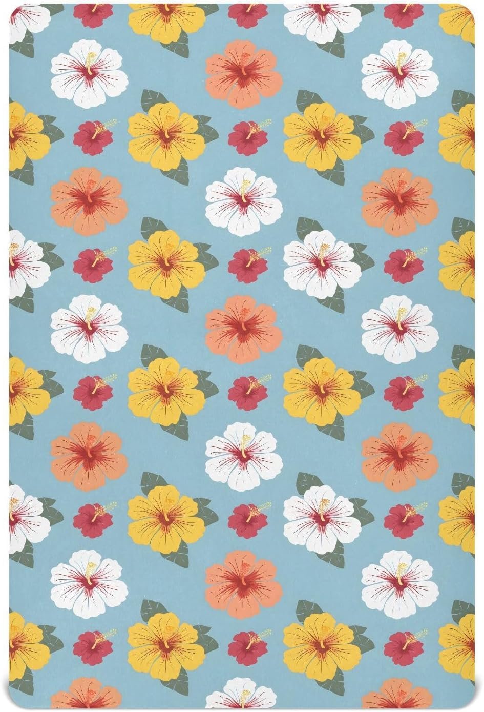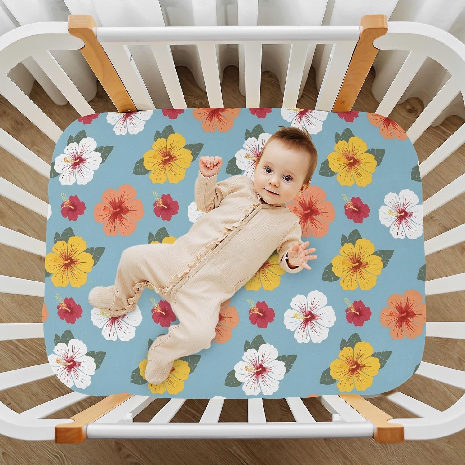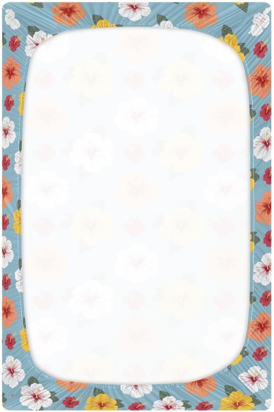 MNSRUU Baby Crib Sheets for Boys Girls, Blue Hibiscus Flowers Soft Breathable Fitted Bassinet Playard Bed Sheet for Standard Crib and Toddler Mattress Playard Bedding, 39x27x5in