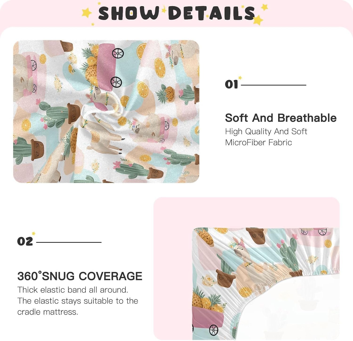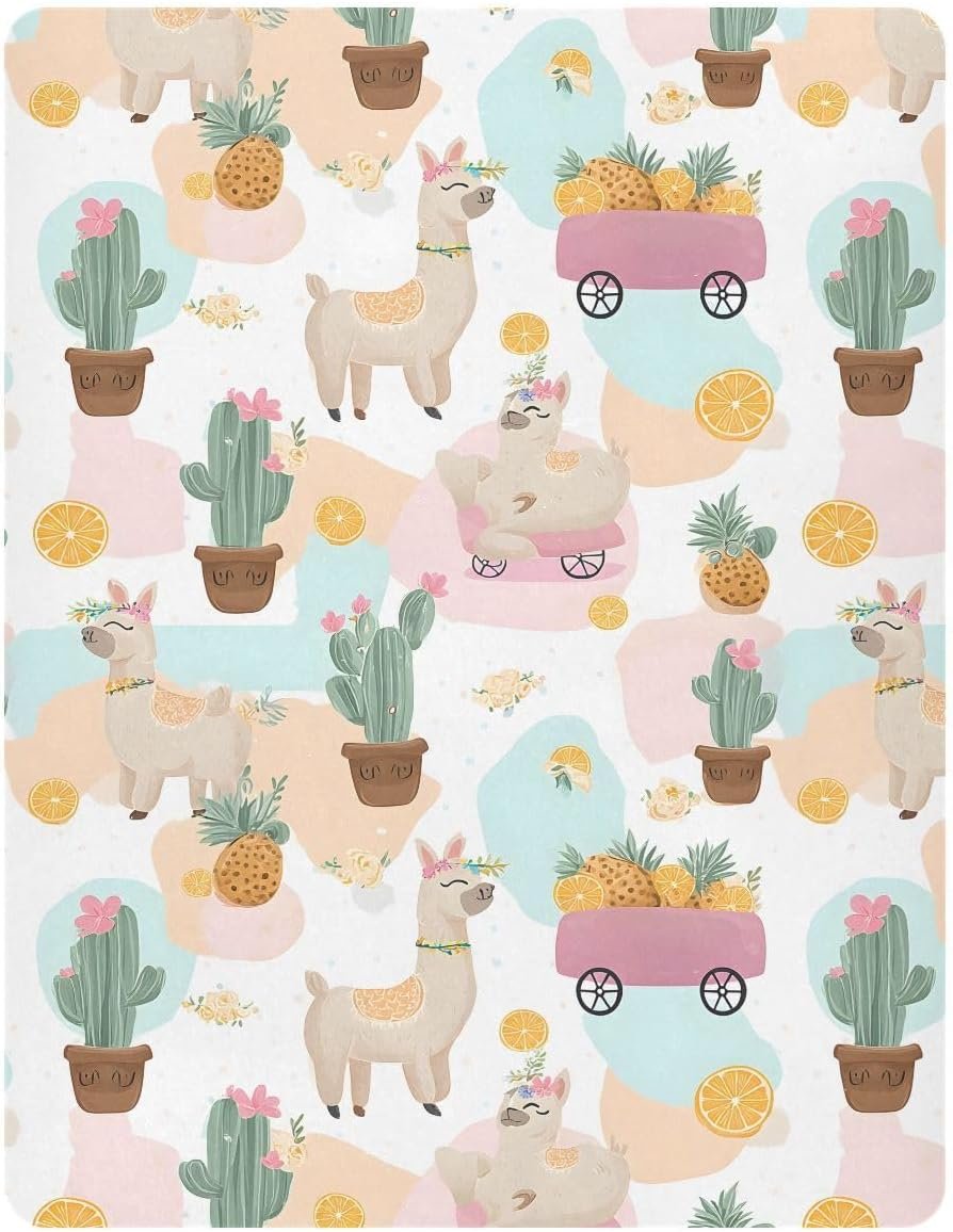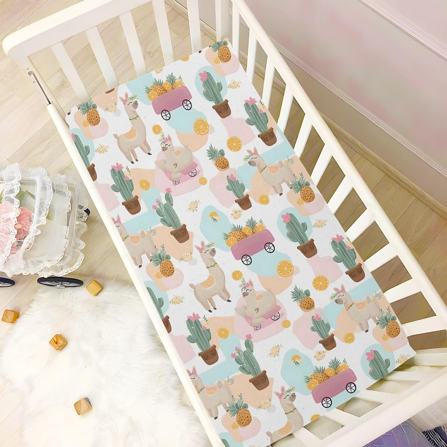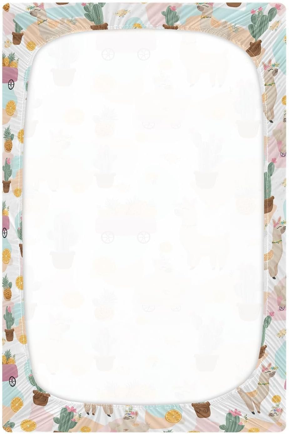 MNSRUU Baby Crib Sheets for Boys Girls, Cactus and Alpaca Soft Breathable Fitted Bassinet Playard Bed Sheet for Standard Crib and Toddler Mattress Playard Bedding, 39x27x5in