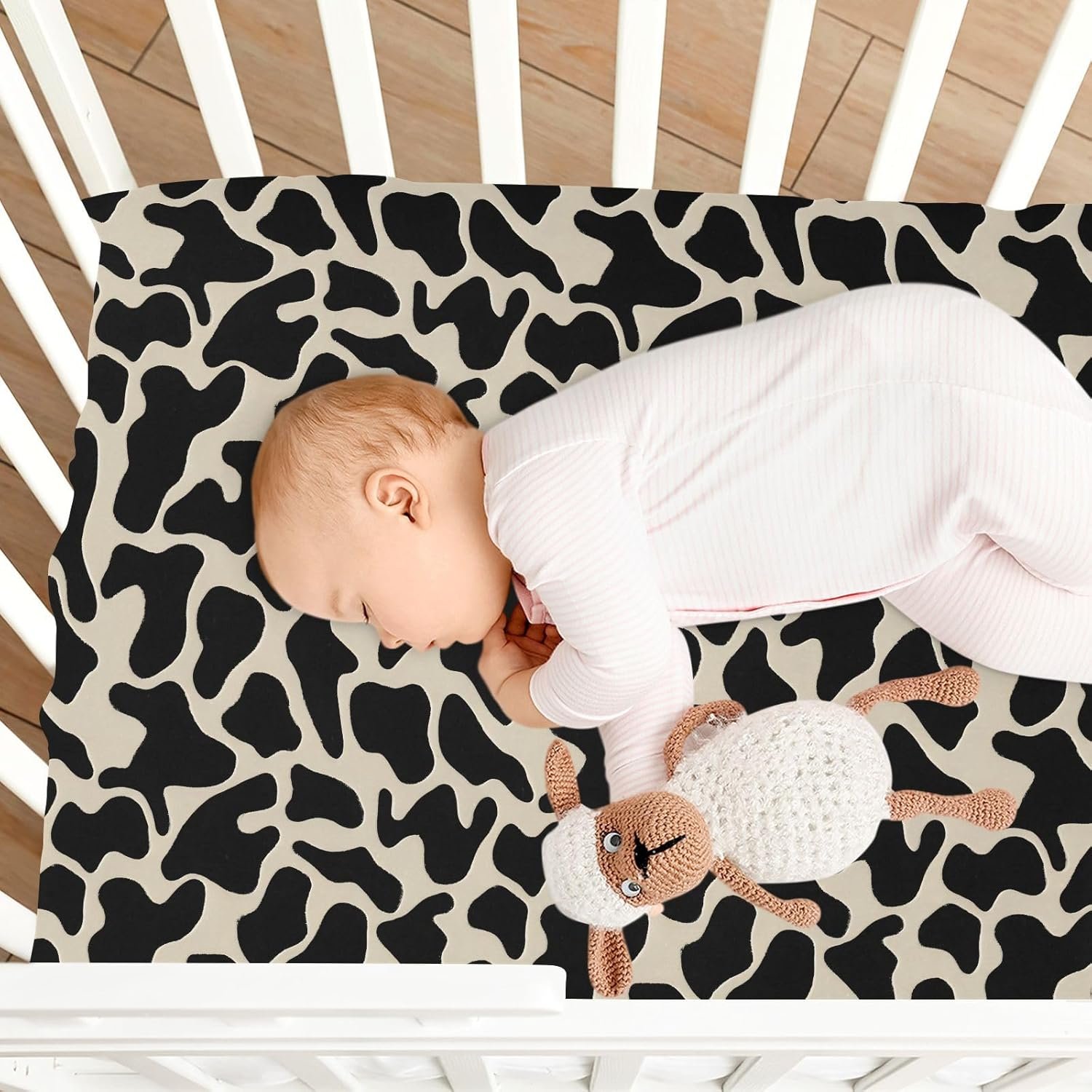 Super Soft & Breathable Fabric: Crafted from cotton-modal-like blend (95% polyester + 5% spandex), this baby crib sheets provide an ultra-soft, skin-friendly surface that’s gentle even on the most sensitive baby skin. Breathable and moisture-wicking, these crib sheets help regulate temperature throughout the night—ideal for all seasons. Whether your baby is napping or playing, ensures all-day comfort and restful sleep