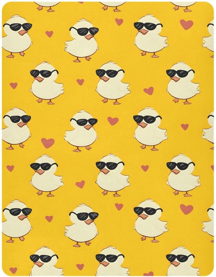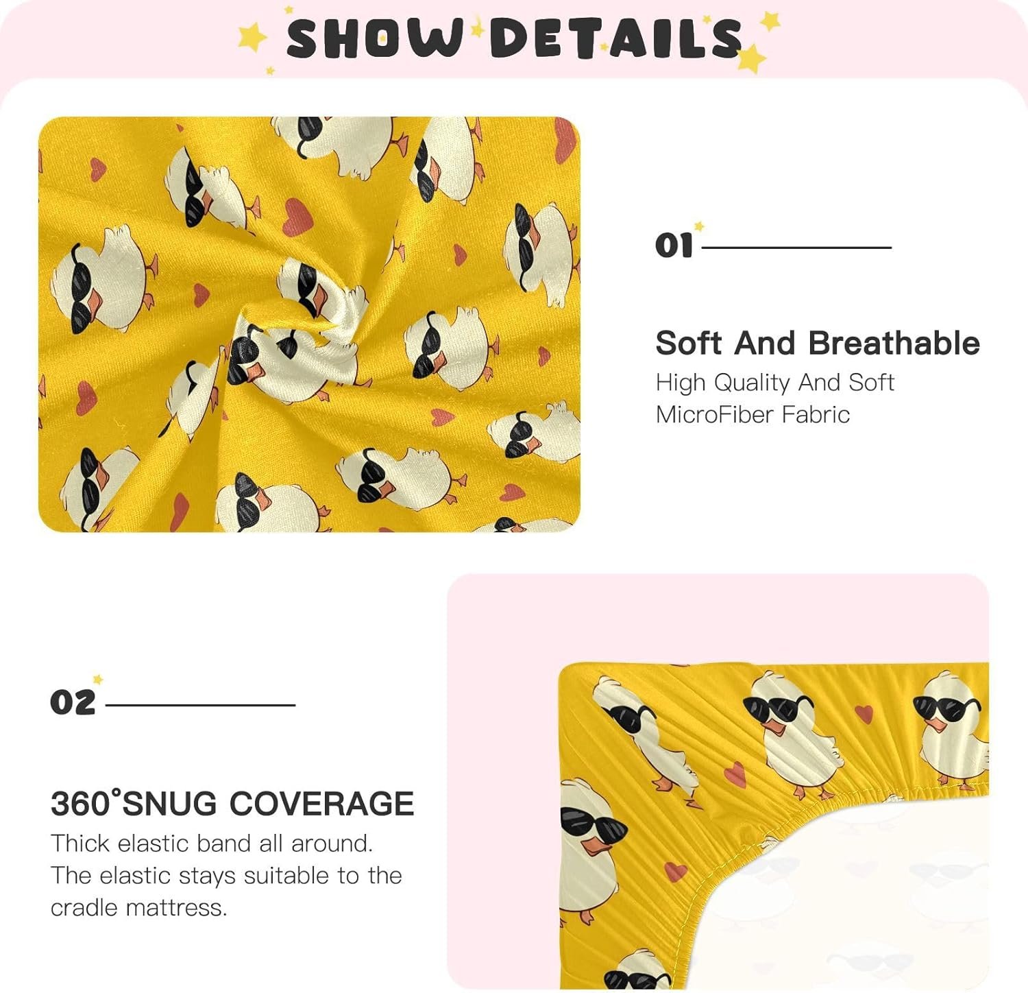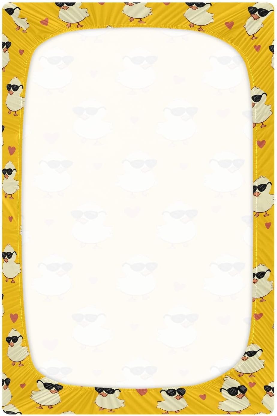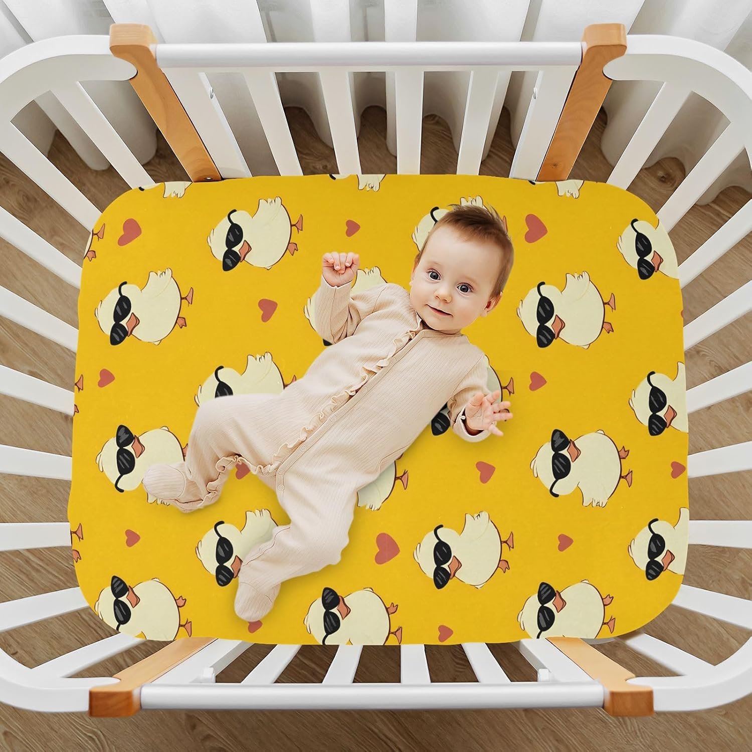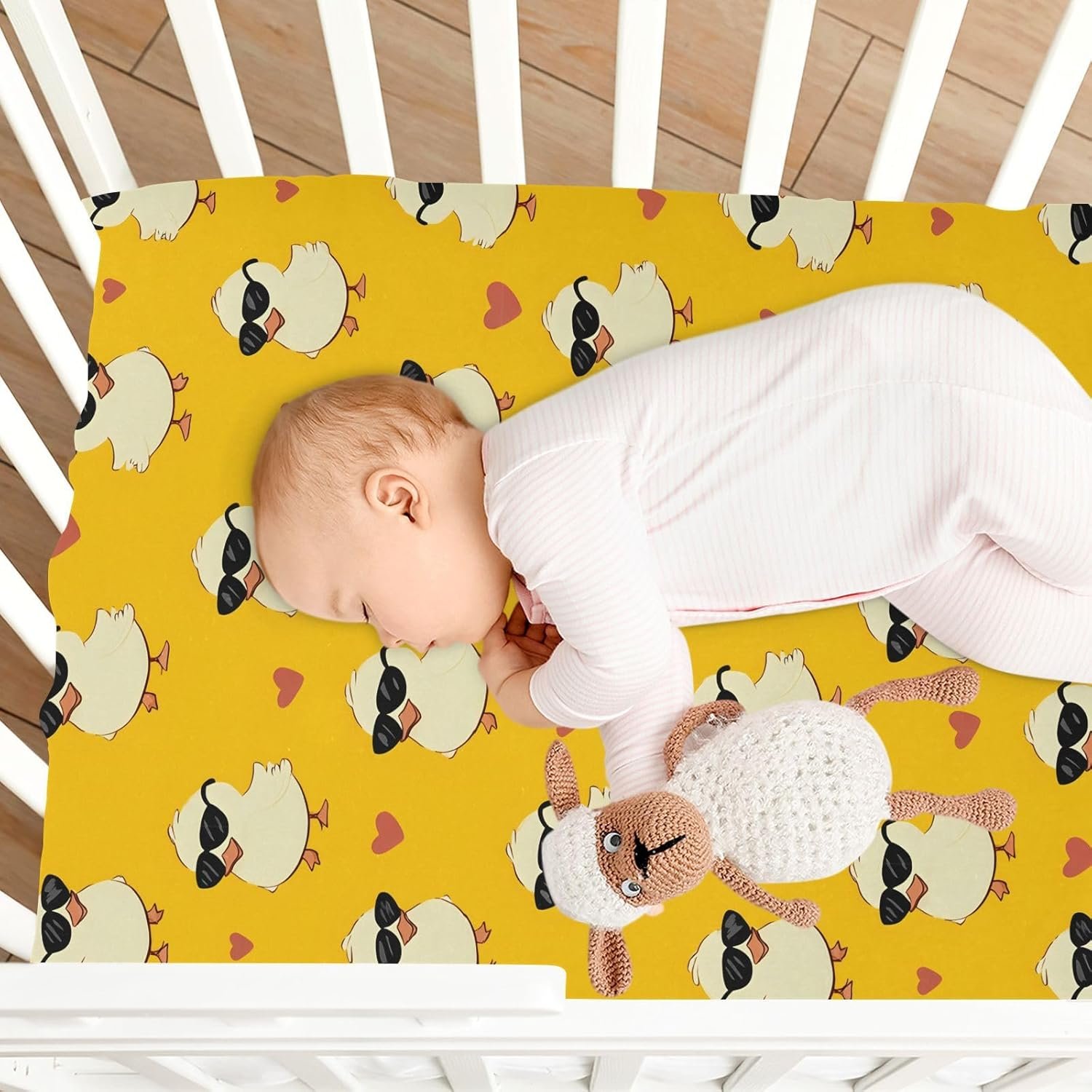 MNSRUU Baby Crib Sheets for Boys Girls, Cute Duck Love Sunglasses Soft Breathable Fitted Bassinet Playard Bed Sheet for Standard Crib and Toddler Mattress Playard Bedding, 39x27x5in