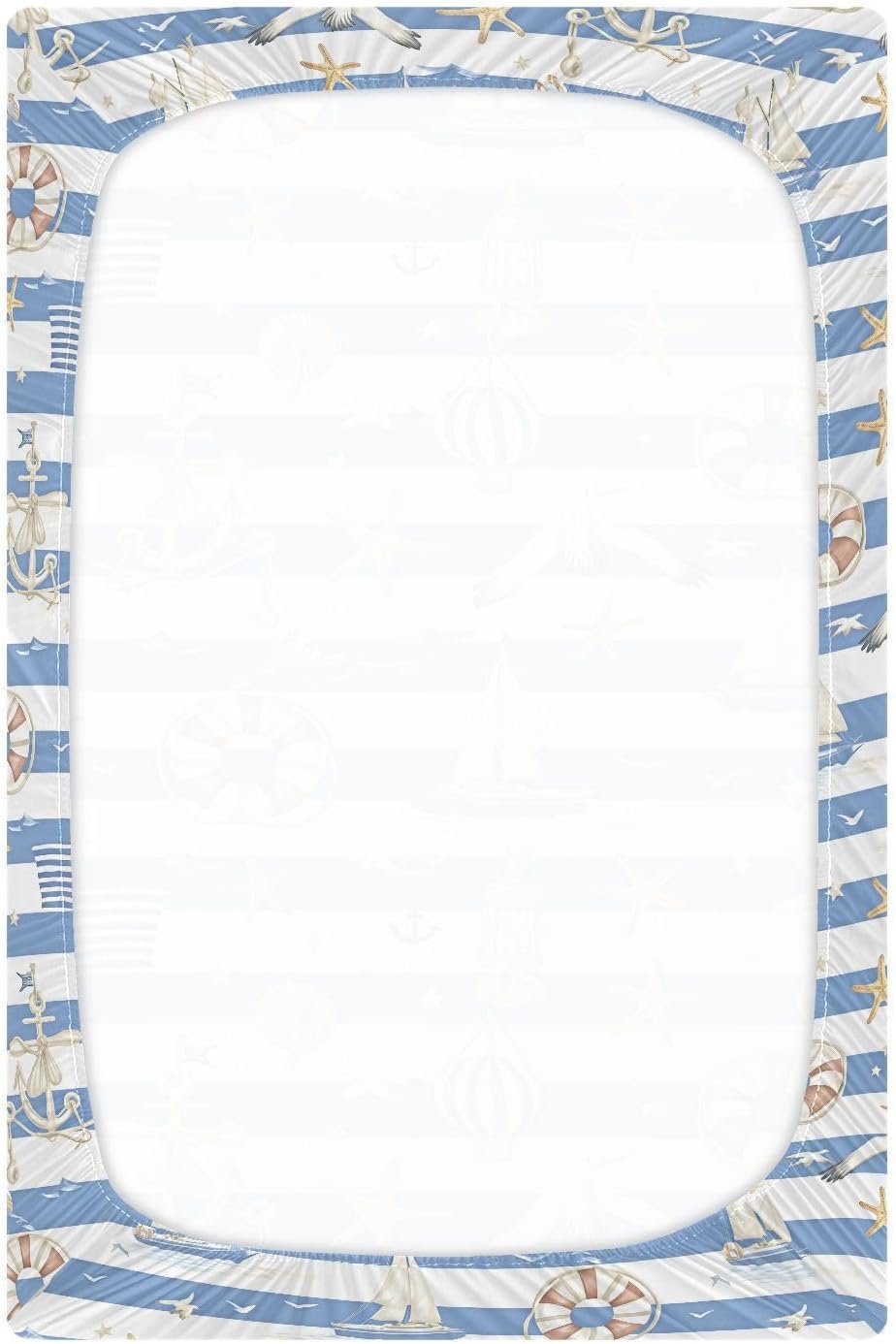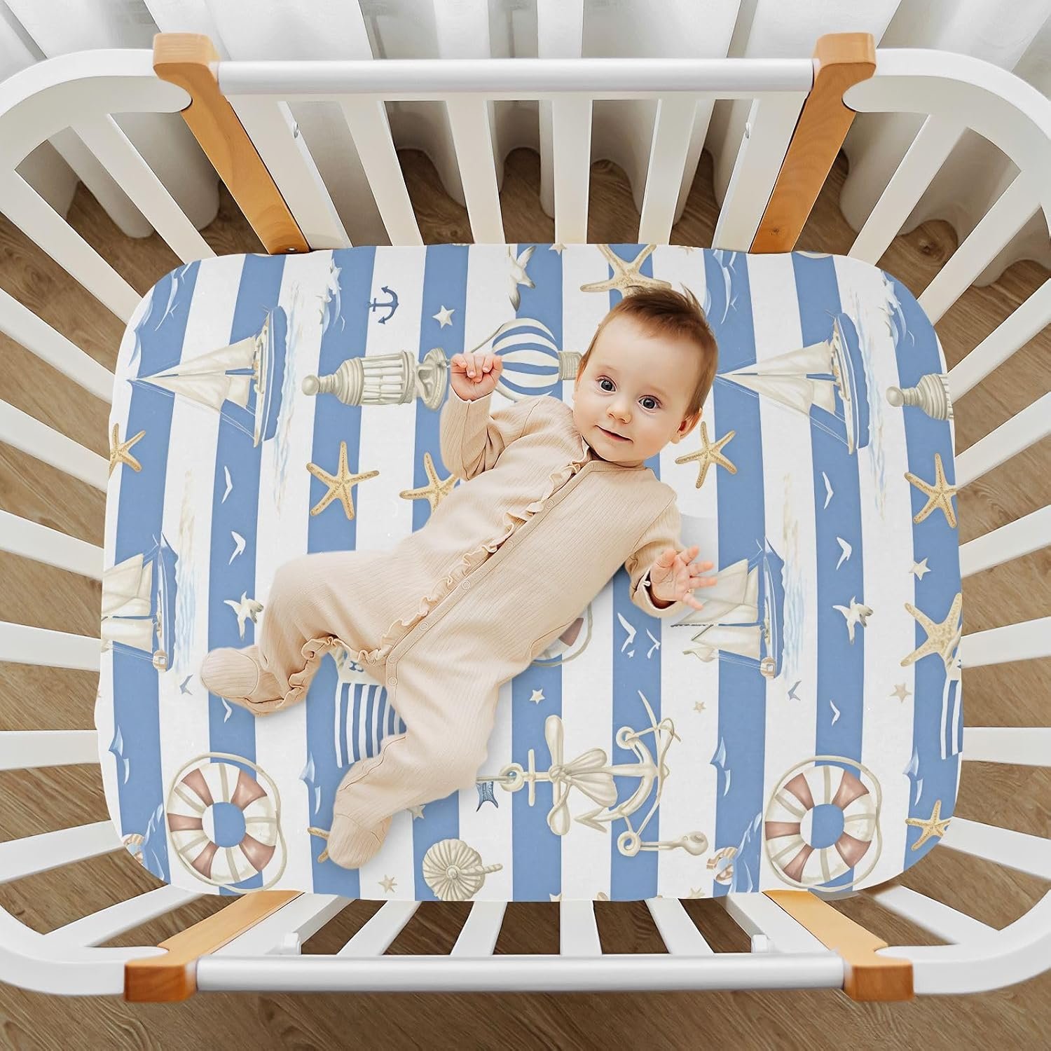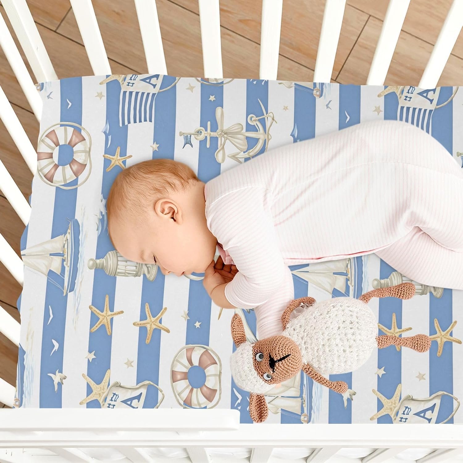 MNSRUU Baby Crib Sheets for Boys Girls, Nautical Stripe Soft Breathable Fitted Bassinet Playard Bed Sheet for Standard Crib and Toddler Mattress Playard Bedding, 39x27x5in