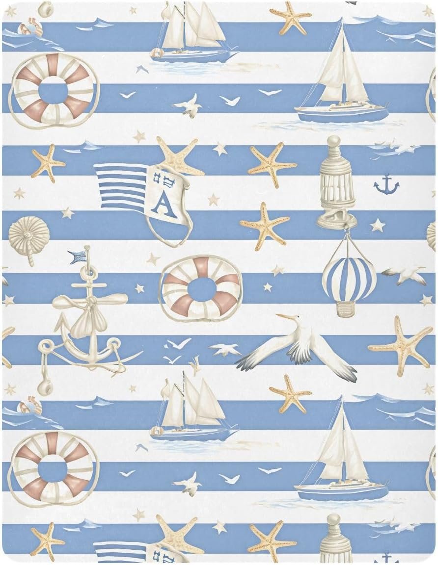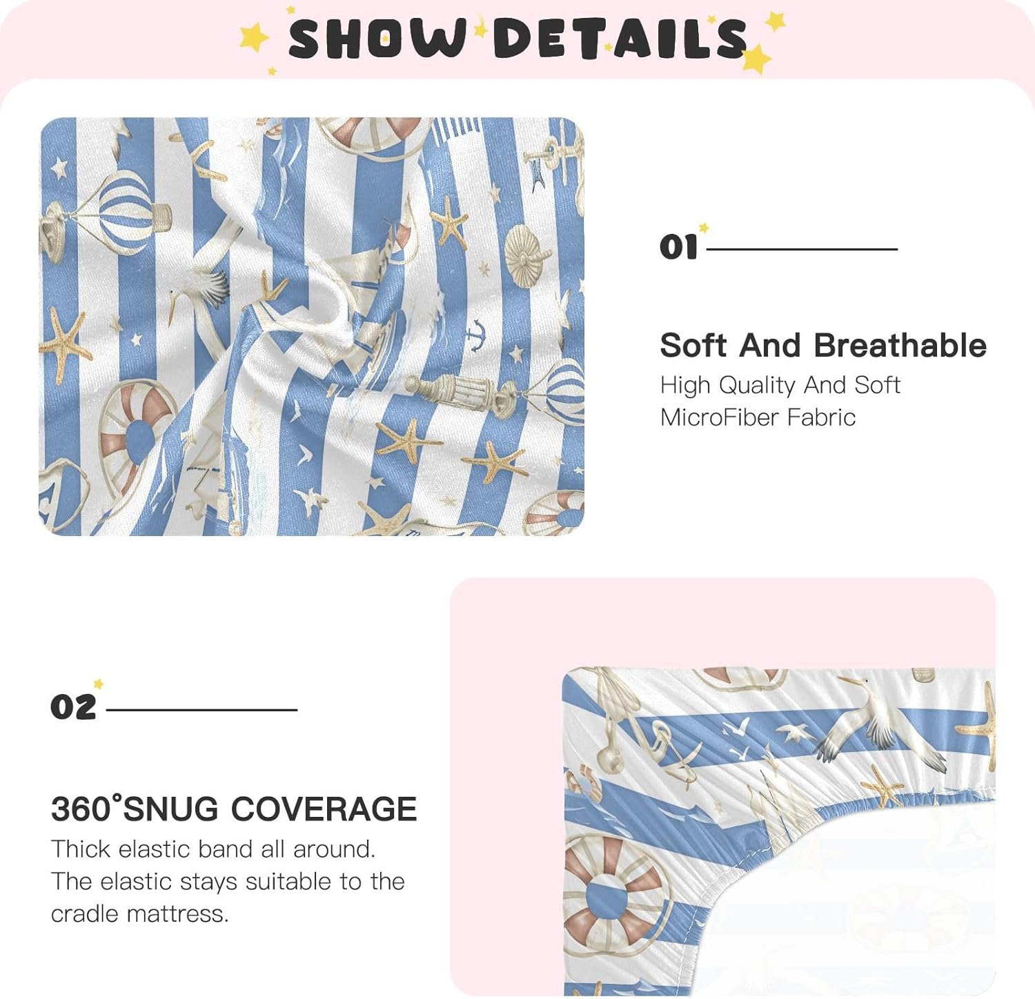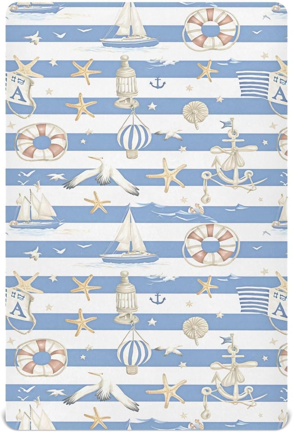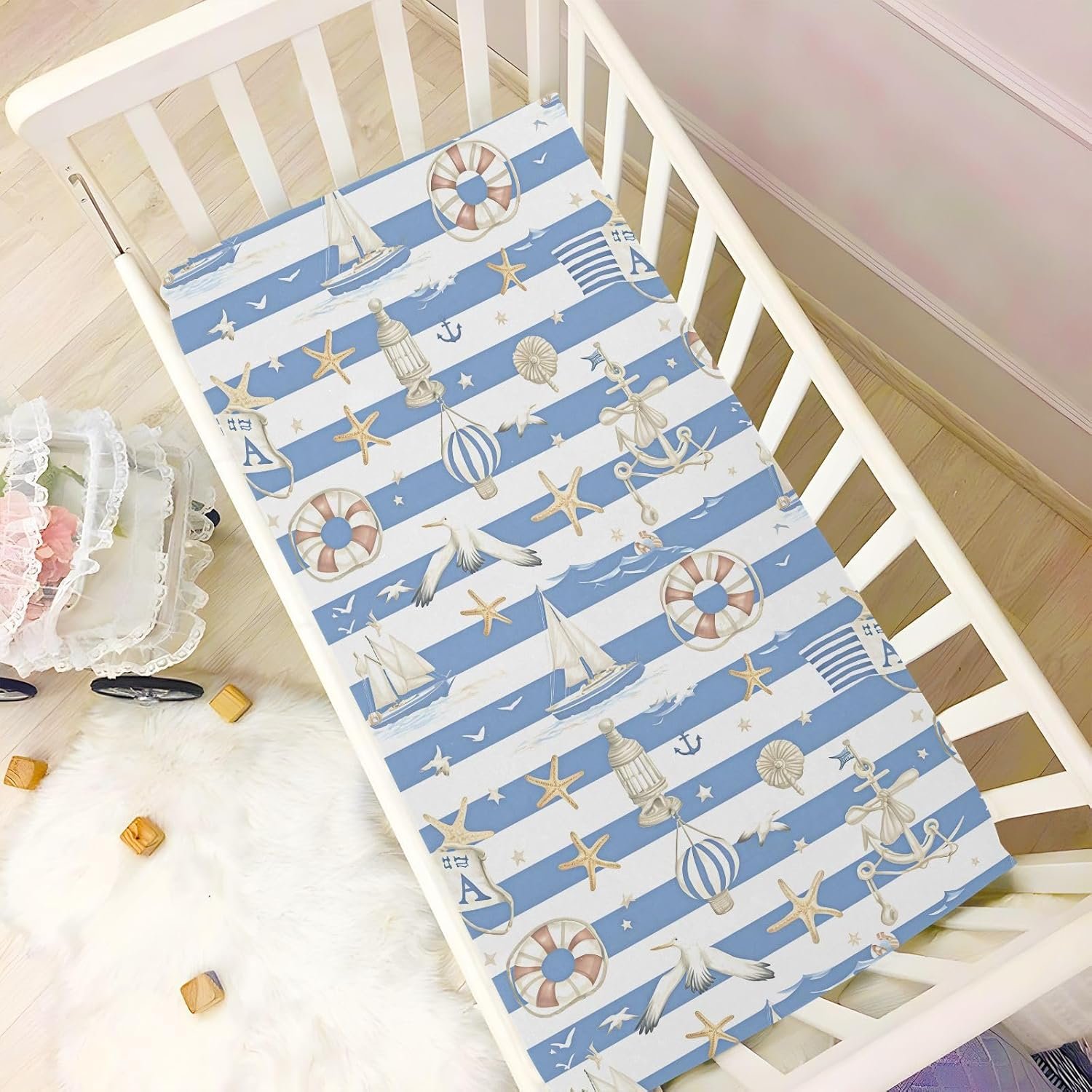 MNSRUU Baby Crib Sheets for Boys Girls, Nautical Stripe Soft Breathable Fitted Bassinet Playard Bed Sheet for Standard Crib and Toddler Mattress Playard Bedding, 39x27x5in