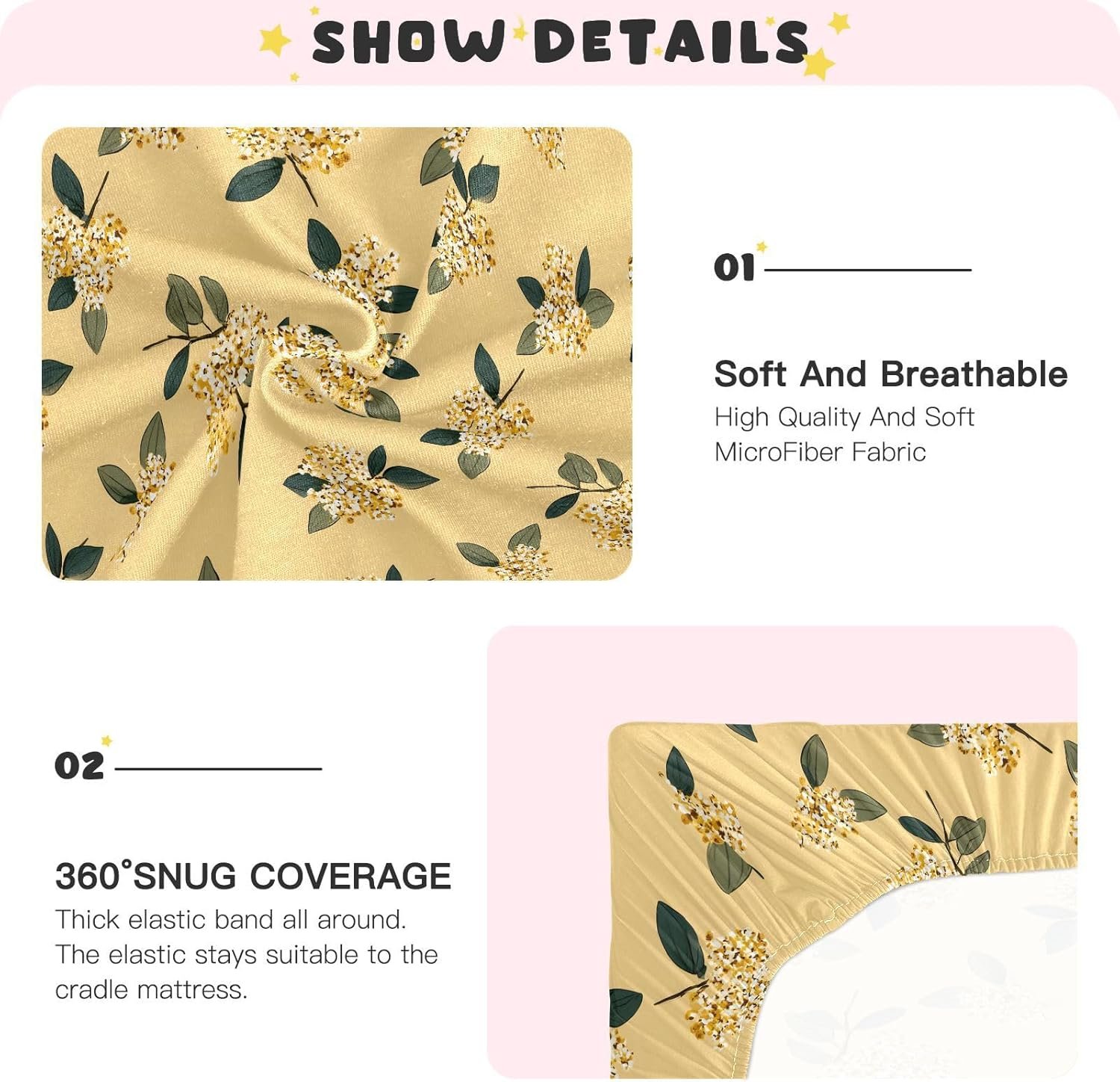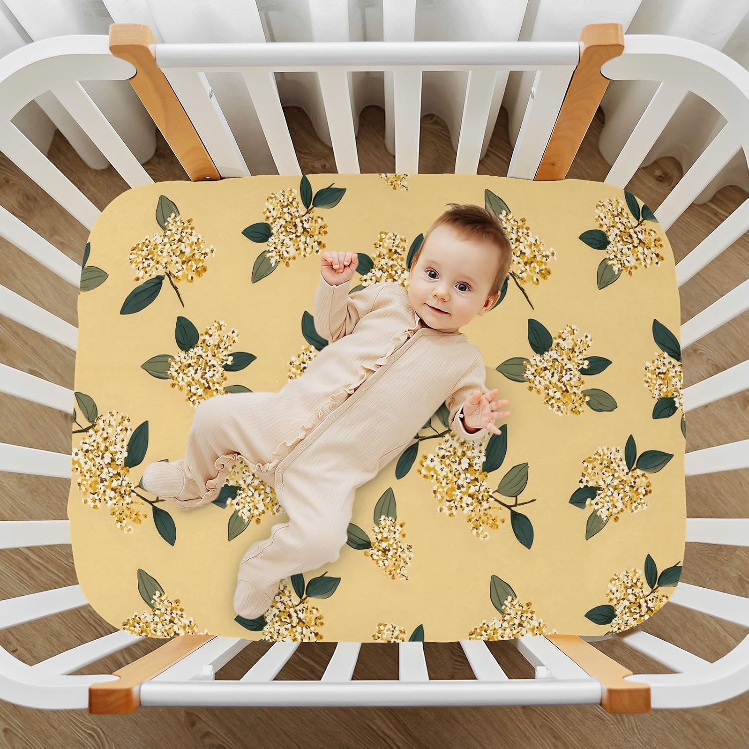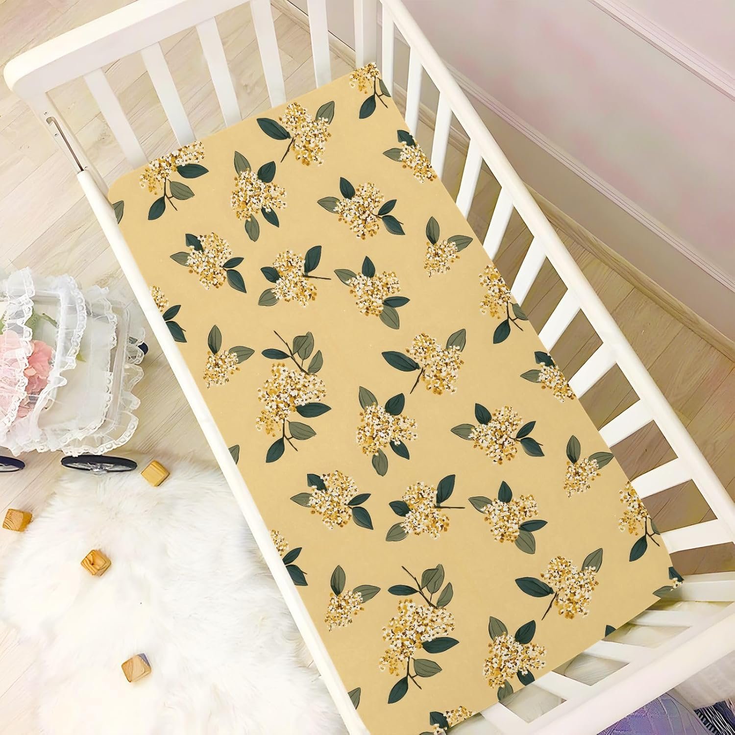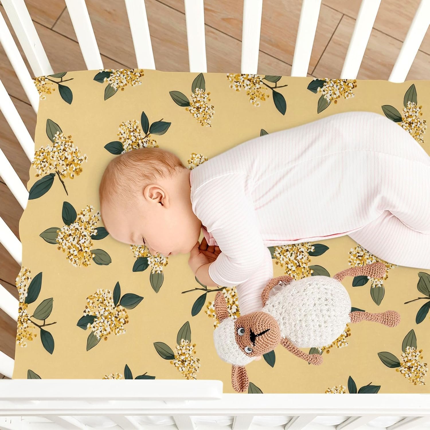 MNSRUU Baby Crib Sheets for Boys Girls, Osmanthus Fragrans Flowers Soft Breathable Fitted Bassinet Playard Bed Sheet for Standard Crib and Toddler Mattress Playard Bedding, 39x27x5in