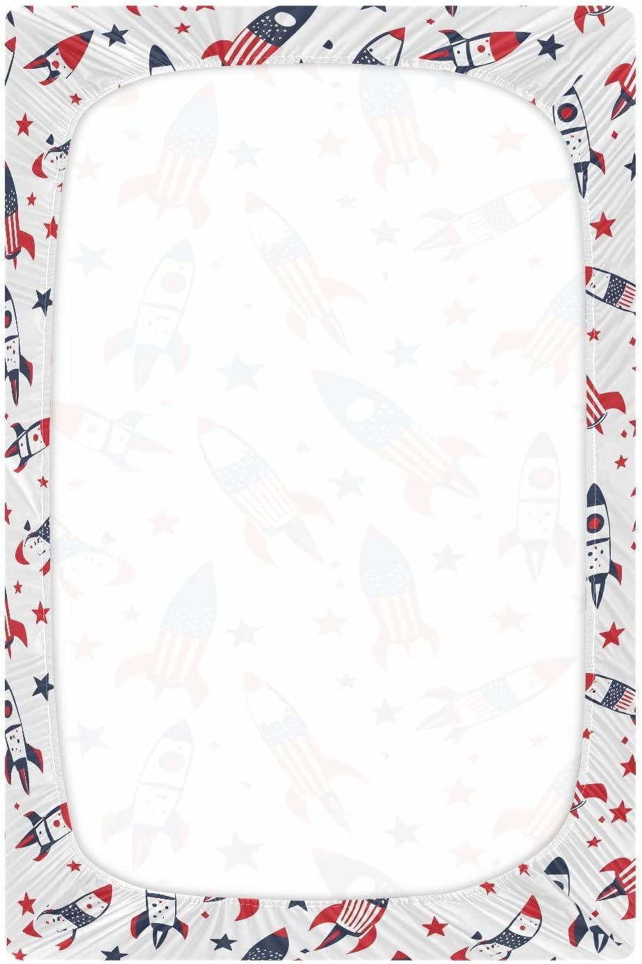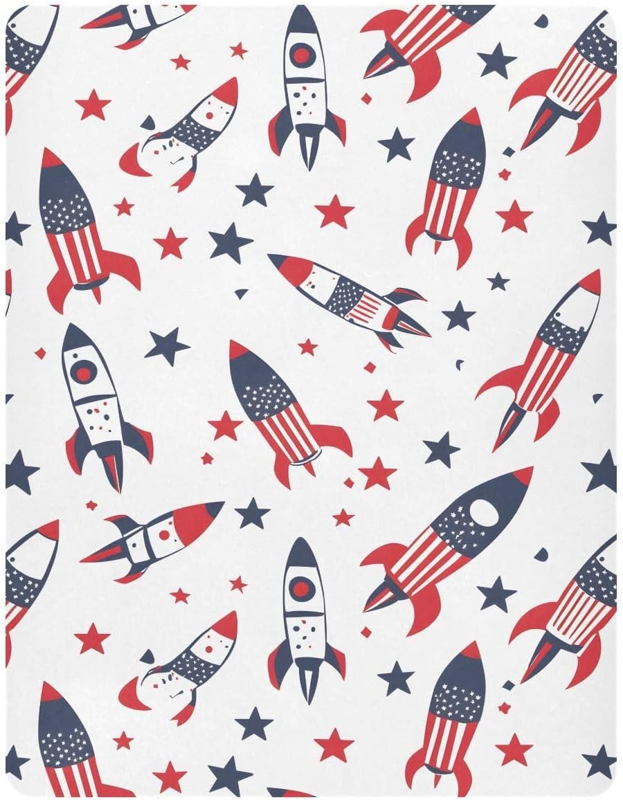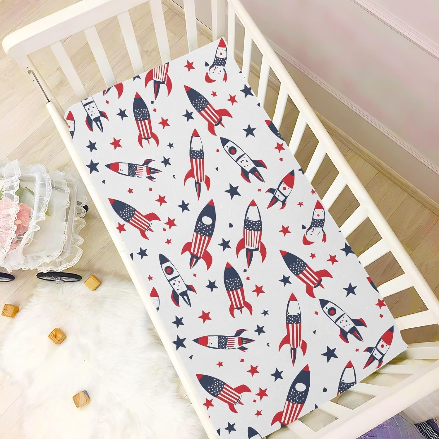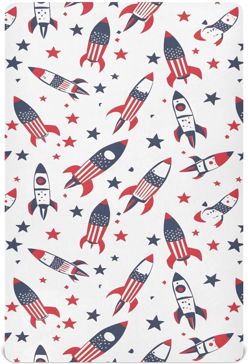 MNSRUU Baby Crib Sheets for Boys Girls, Rocket American Flag White Soft Breathable Fitted Bassinet Playard Bed Sheet for Standard Crib and Toddler Mattress Playard Bedding, 39x27x5in
