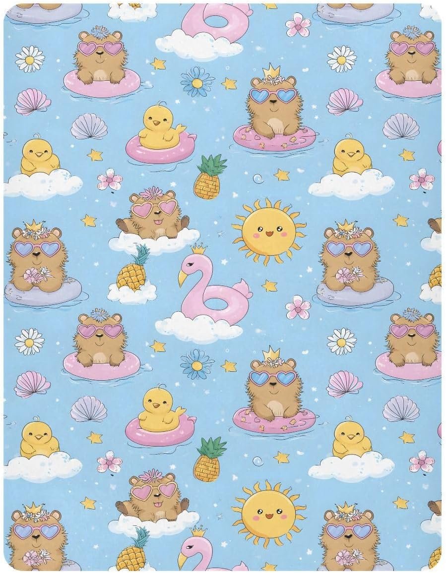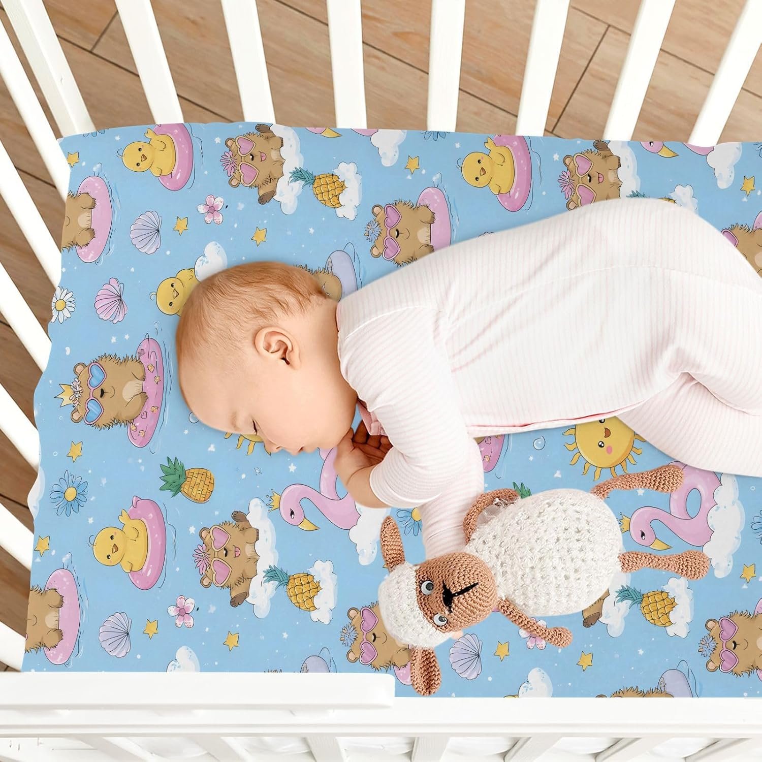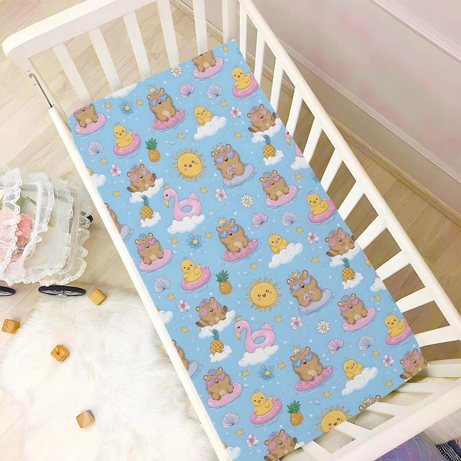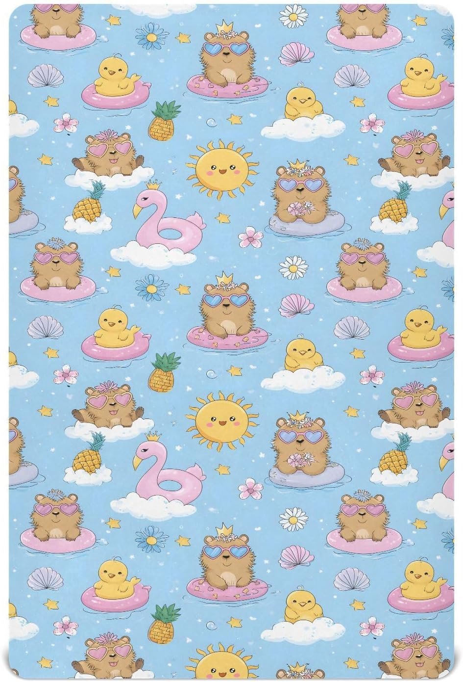 MNSRUU Baby Crib Sheets for Boys Girls, Summer Duckling Soft Breathable Fitted Bassinet Playard Bed Sheet for Standard Crib and Toddler Mattress Playard Bedding, 39x27x5in