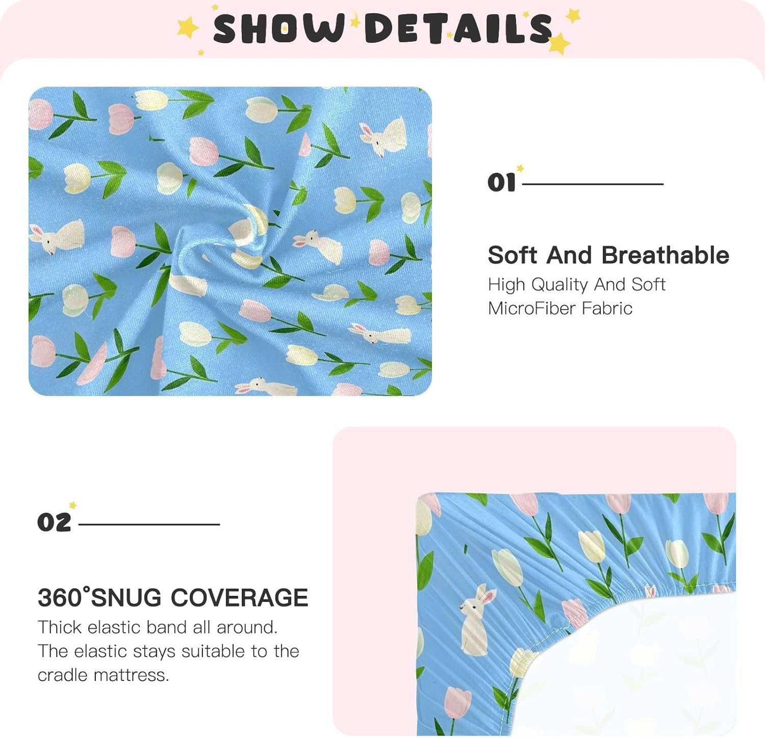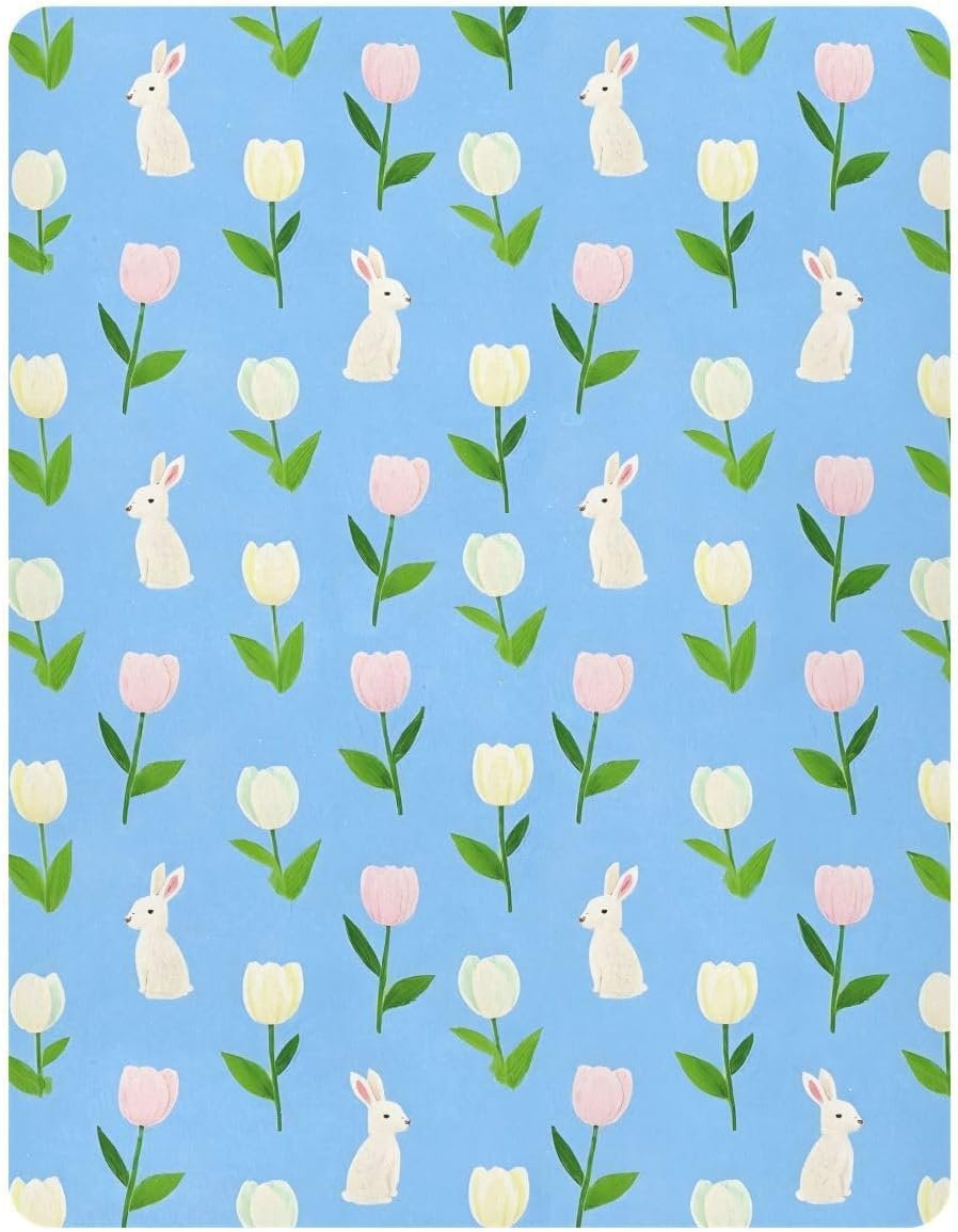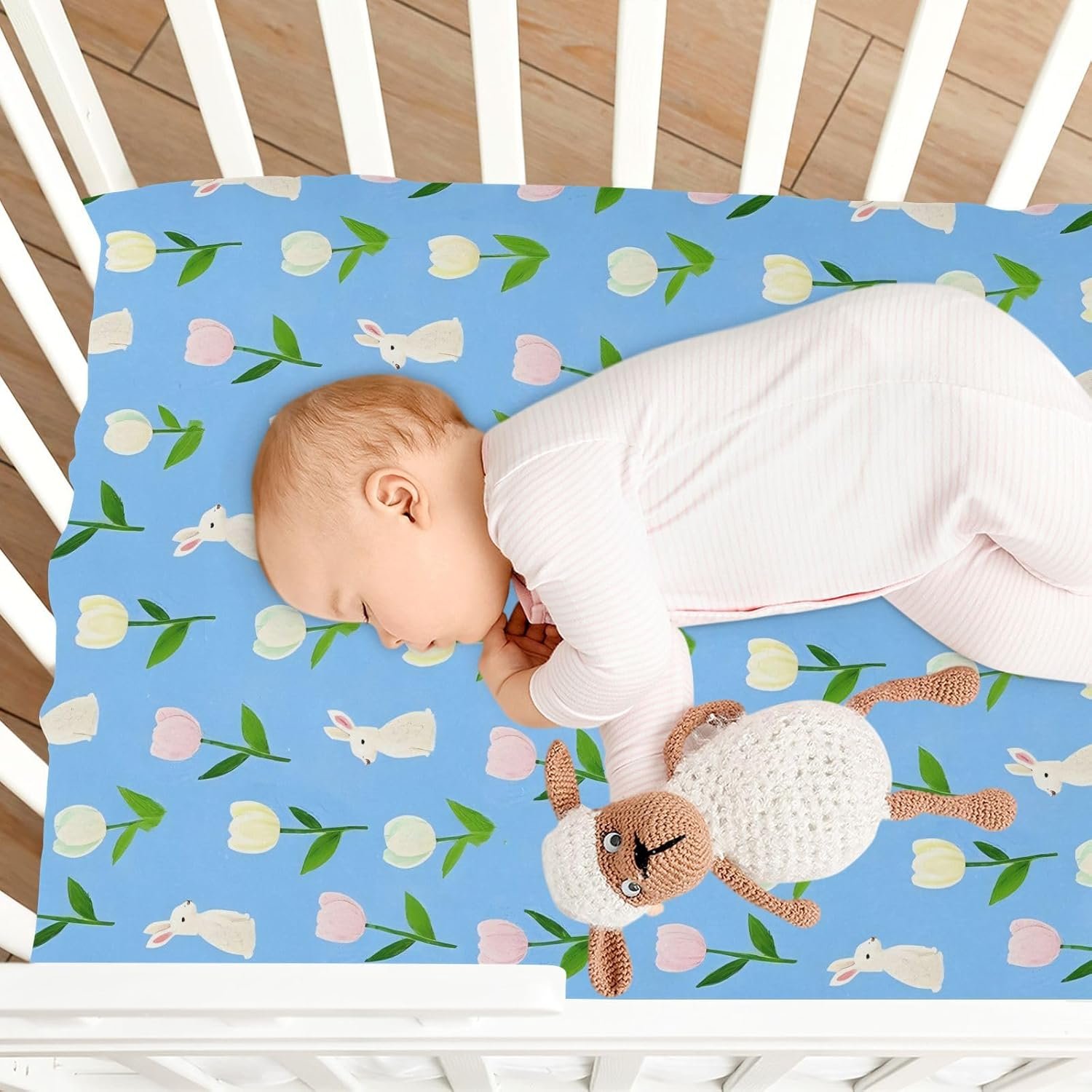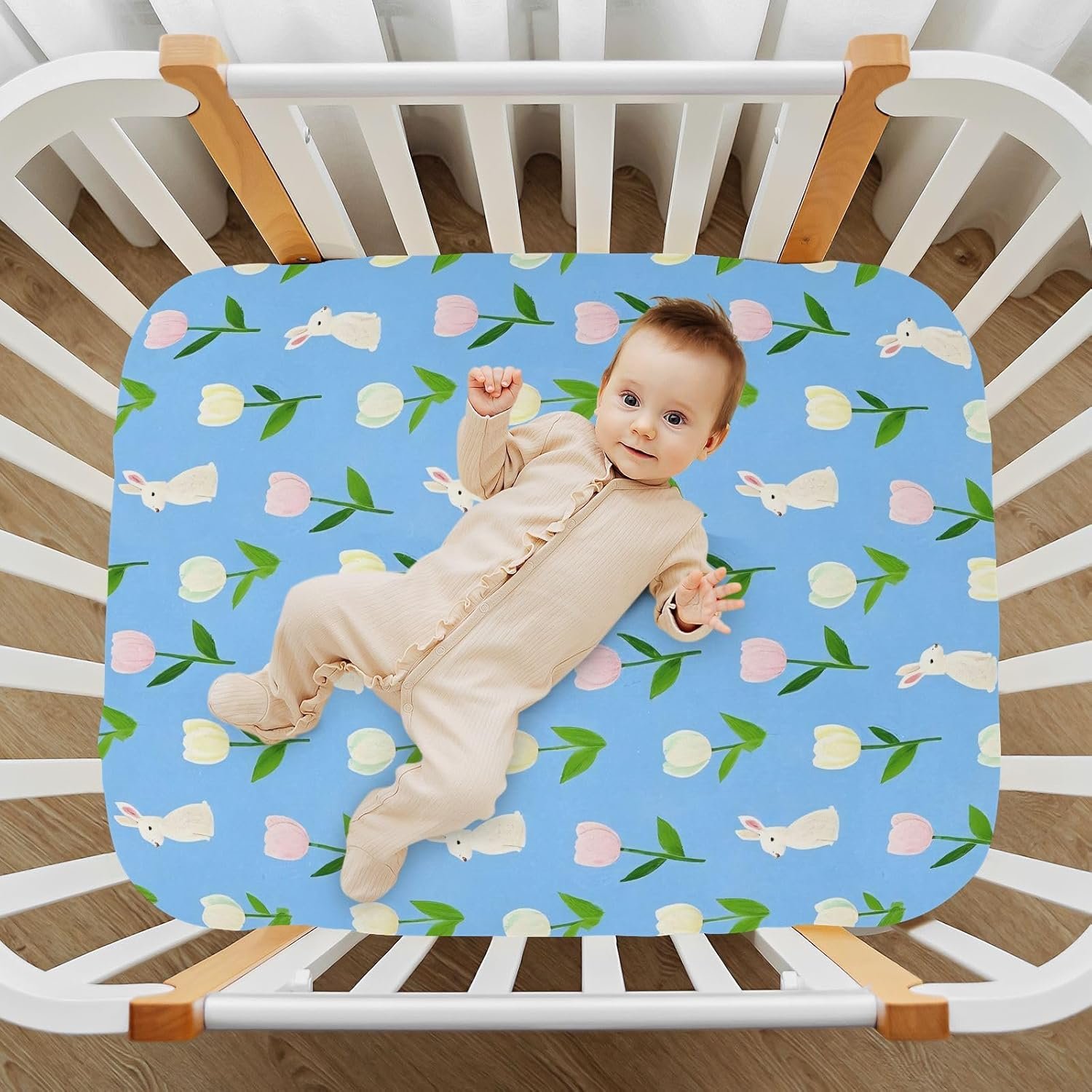 MNSRUU Baby Crib Sheets for Boys Girls, Tulip Rabbit Soft Breathable Fitted Bassinet Playard Bed Sheet for Standard Crib and Toddler Mattress Playard Bedding, 39x27x5in