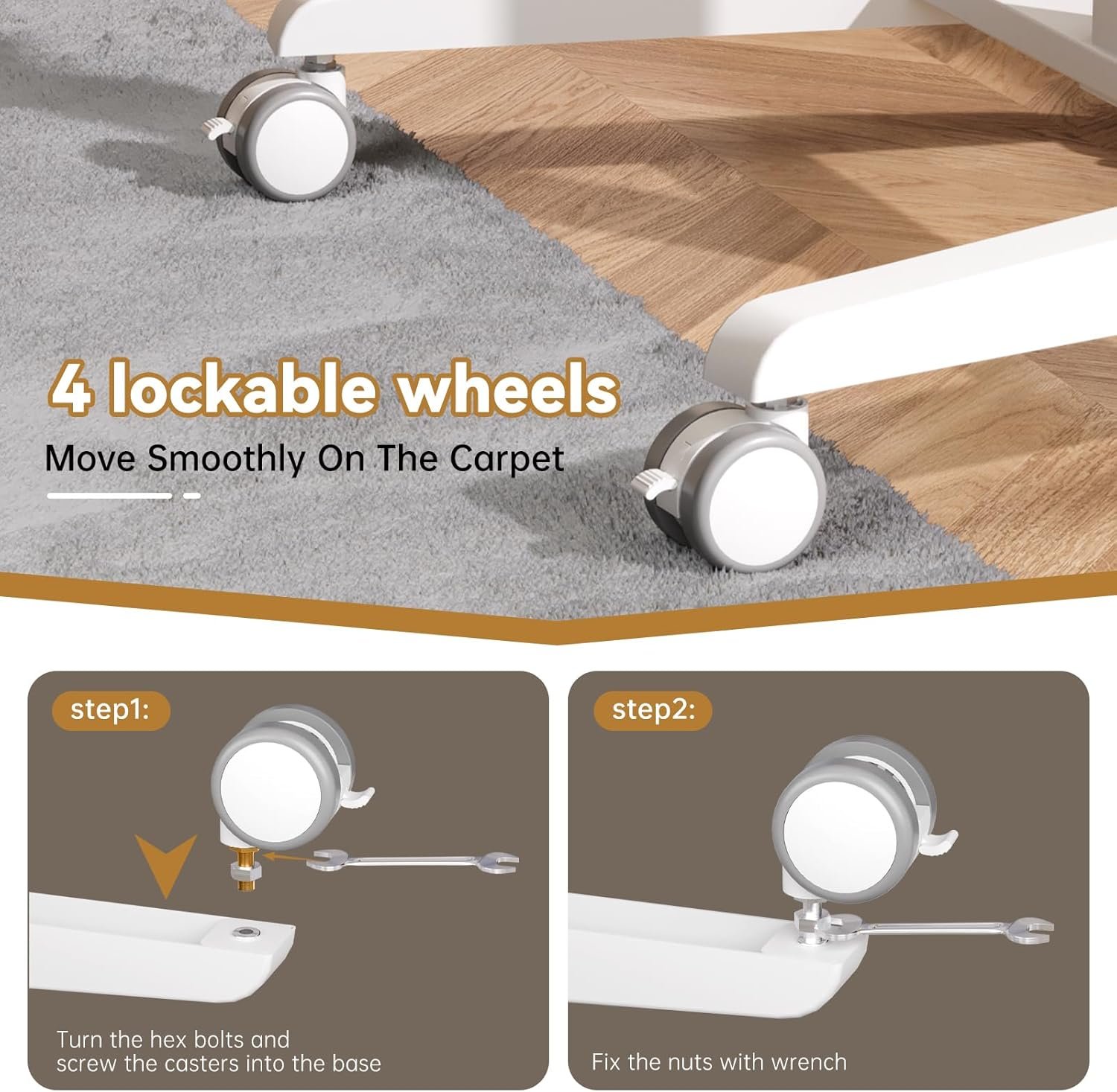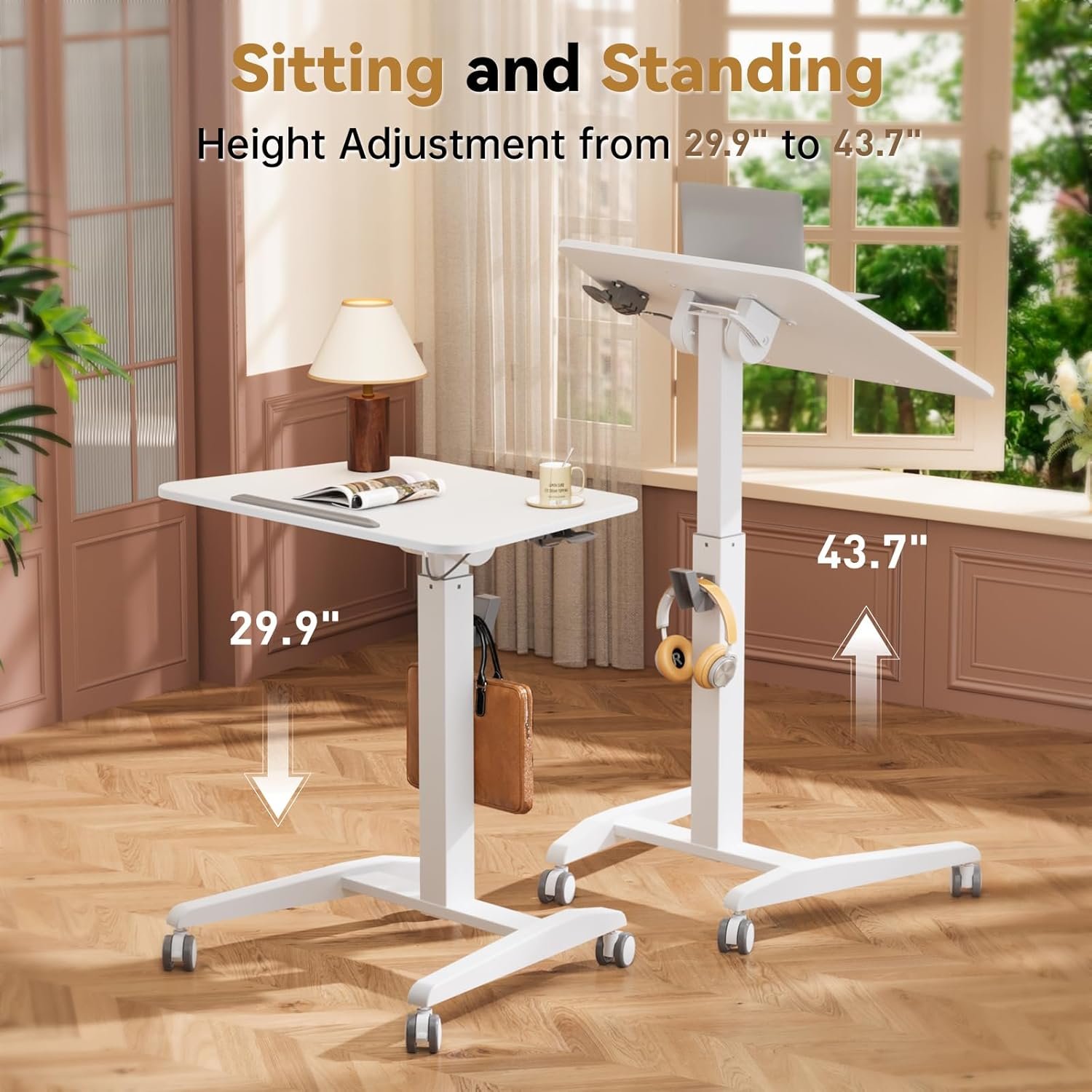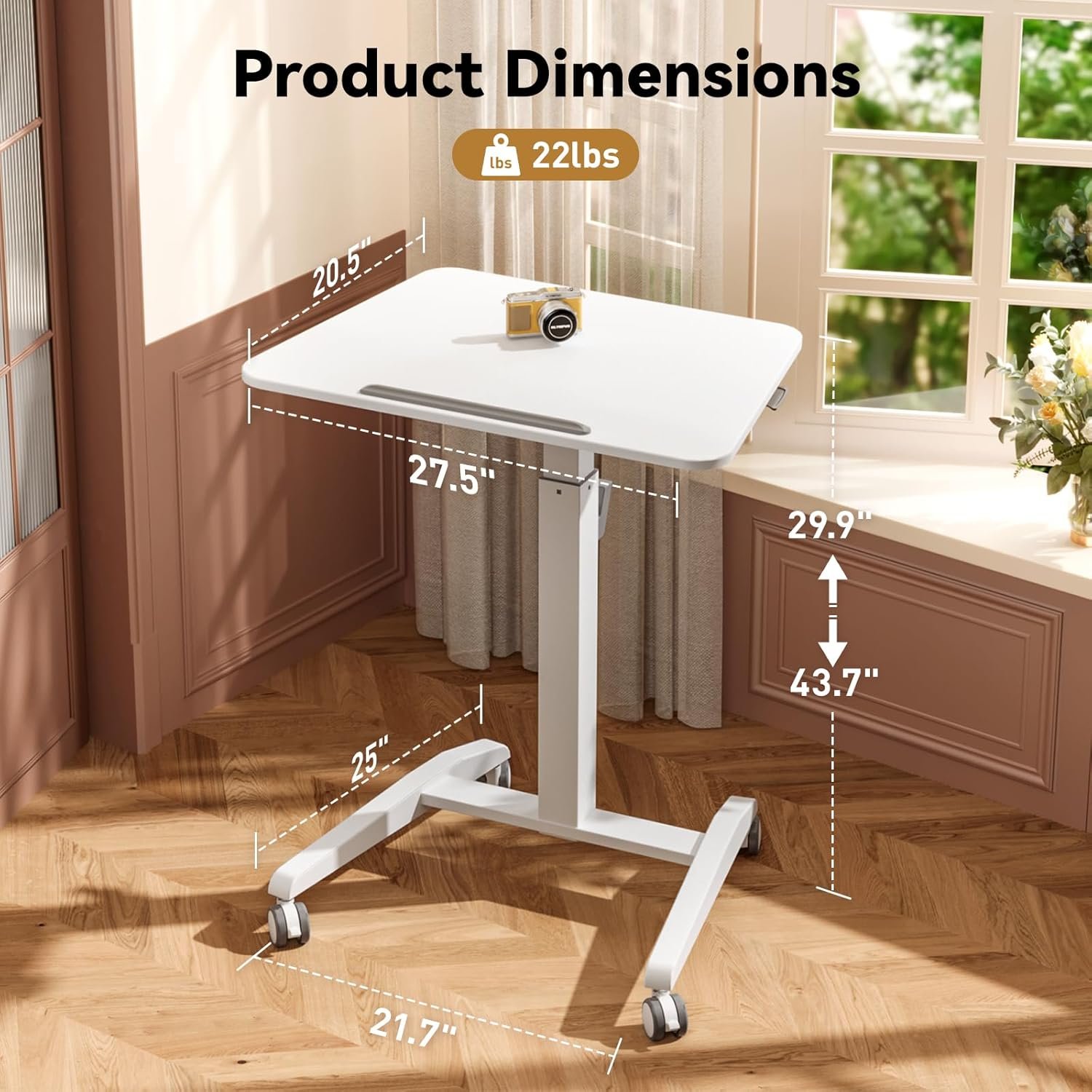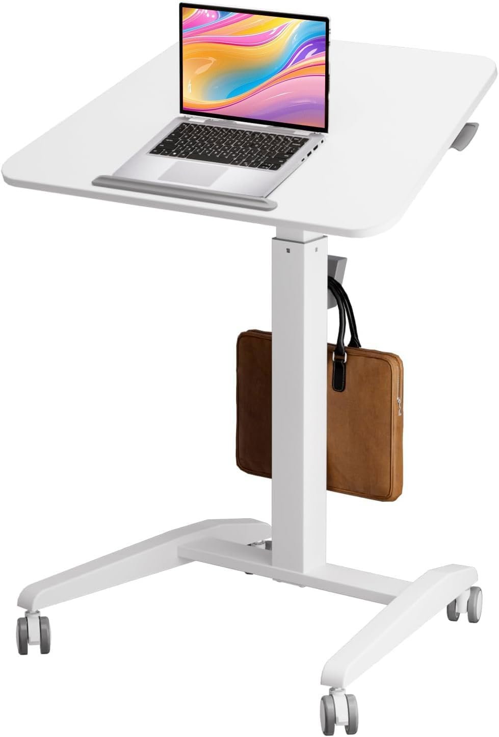 Sturdy Construction — Our mobile standing desk is made of strong steel with a rust-resistant coating for extended use. Also, we provide you with all hardware and step-by-step instructions to easily assemble your laptop desk