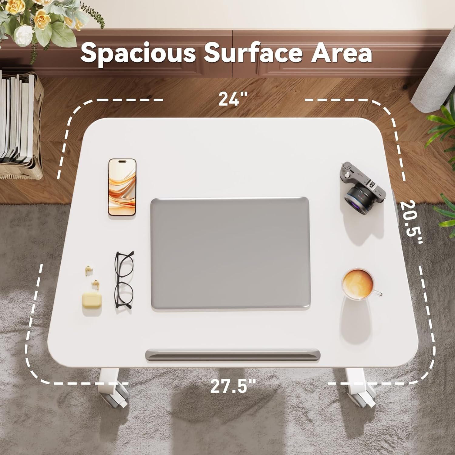Spacious Work Space — The surface has enough space for laptops or tablet, mouse, keyboard, books, painting etc. Moving load capacity up to 22 lbs. Plus, the non-slip pads can support laptops securely when the top is tilted