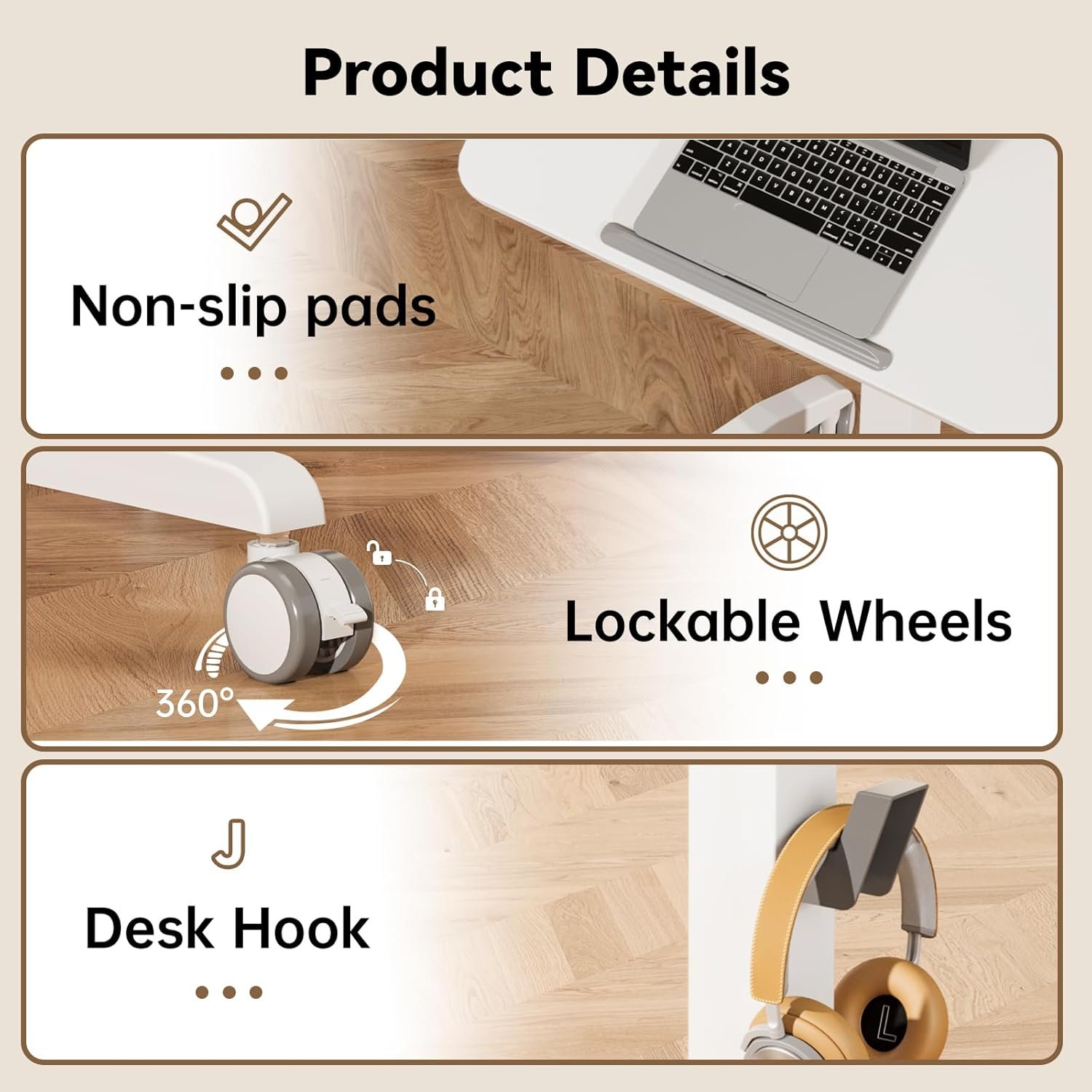 Multifunctional Mobile Desk — Rolling laptop desk is equipped with 4 wheels, which can be easily wheel it anywhere you like. It is an ideal portable desk for educational institutions, office, training, home office