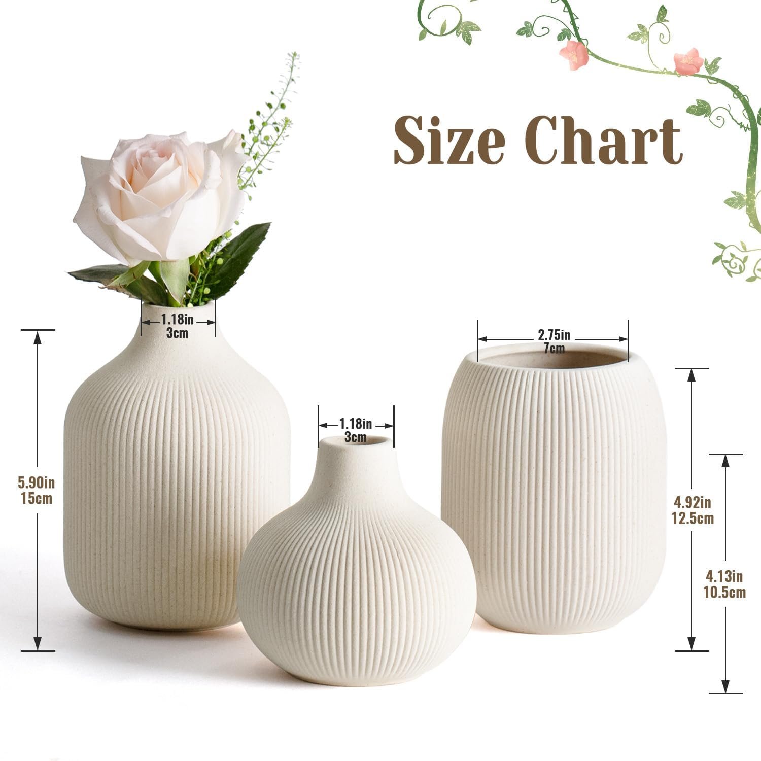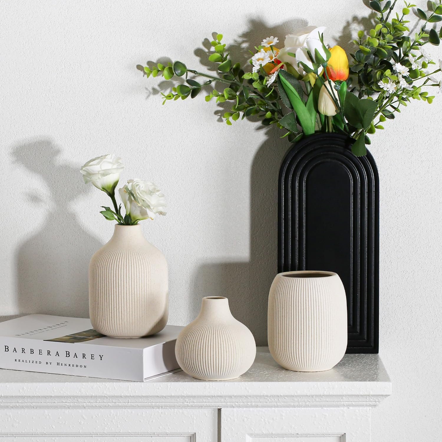 Whether displayed together as a set or individually throughout your home, these modern ceramic vases offer endless styling possibilities. Perfect for adding a touch of sophistication to your living room, bedroom, or dining area, these small vases for decor are sure to impress.