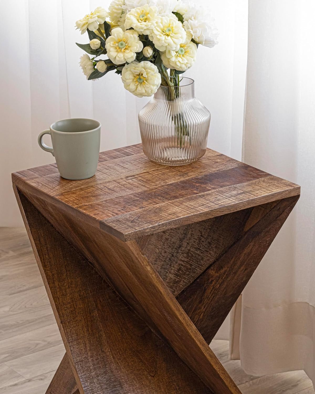 Modern Hand Made One-of-a-Kind Carved Mango Wood End Table, Farmhouse Side Table,Farmhouse End Table,Living Room,Bedroom, Accent Table, Contemporary Architectural Designed Natural