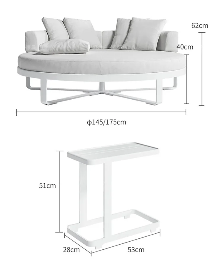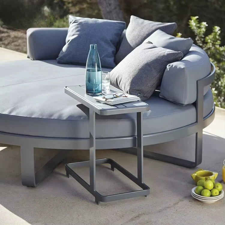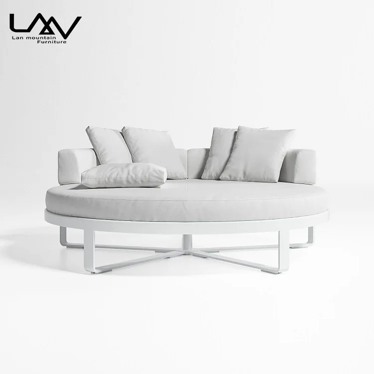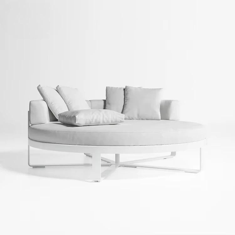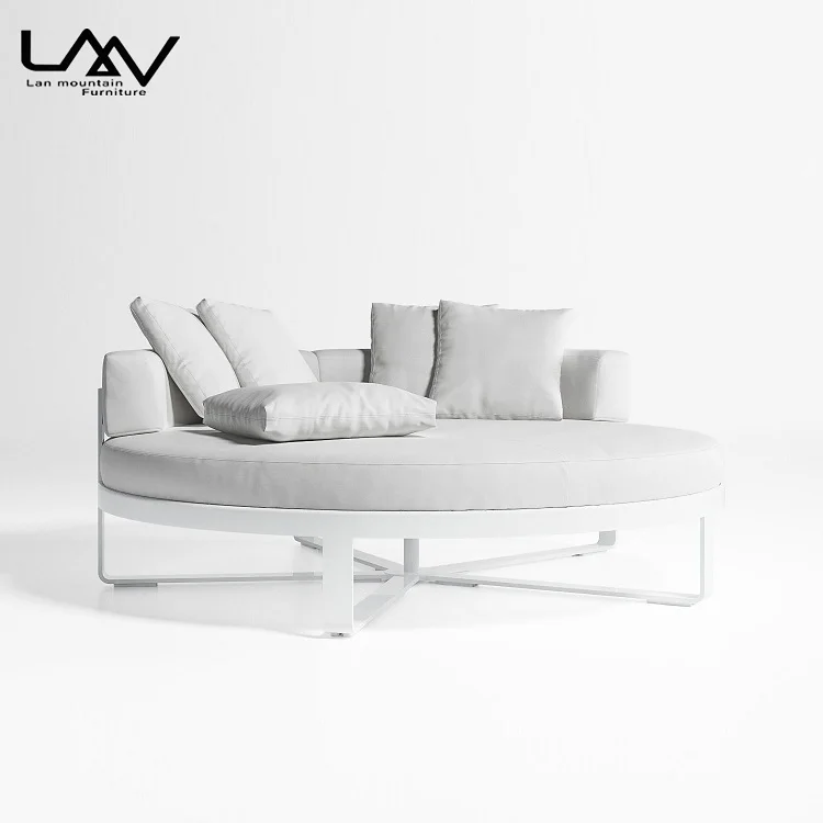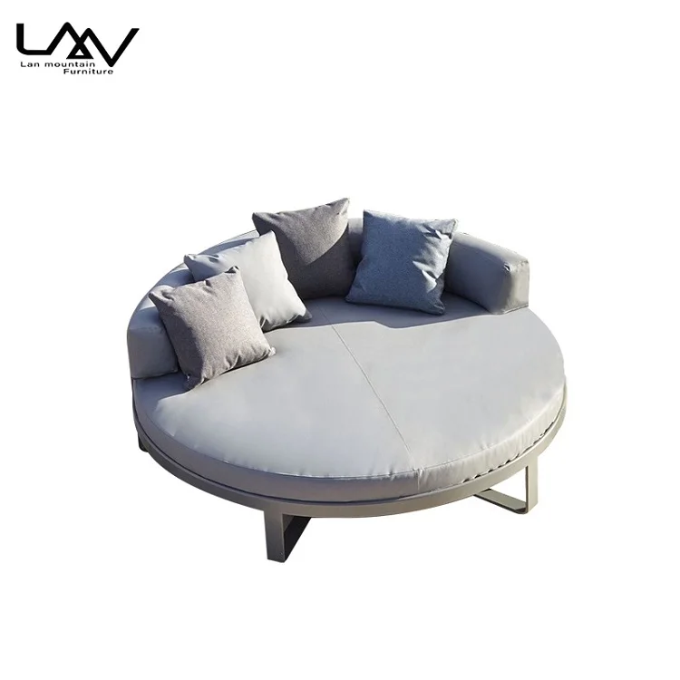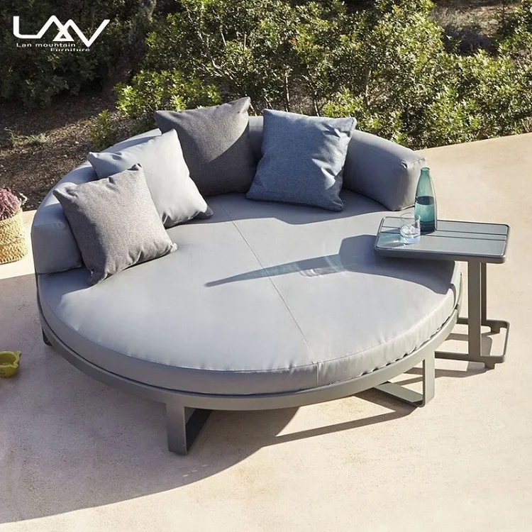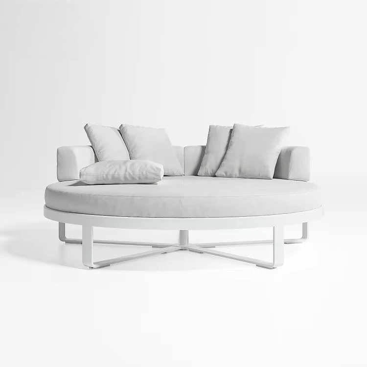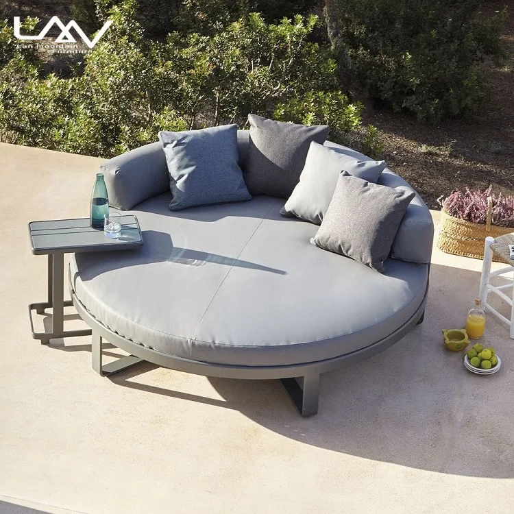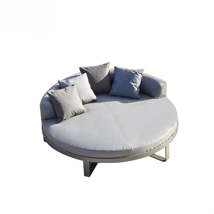 Modern Outdoor hotel round aluminium frame Sun bed garden patio soft cushion daybed outdoor furniture