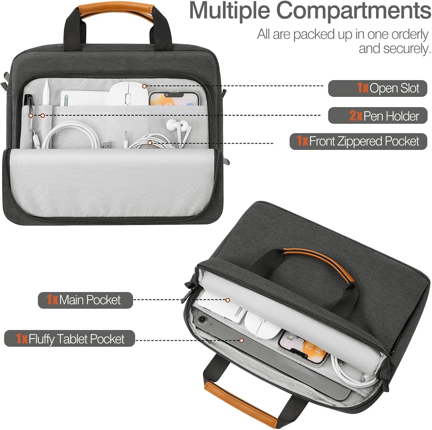 【Double Pockets】- Dual pockets are designed for separately and neatly organizing your tablet as well as extra accessories, making them within reach anywhere and anytime. Keep your items well organized, and easily find the thing you need.