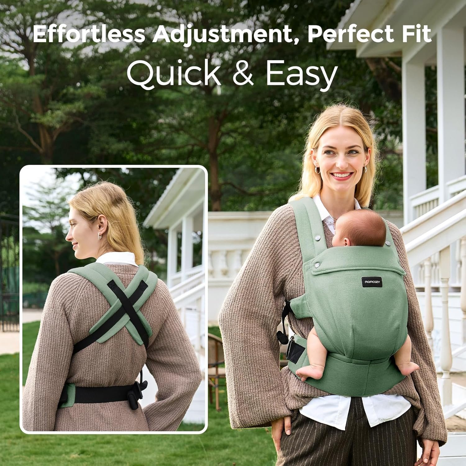 Momcozy Baby Carrier with Natural Cotton Linen, Built to Last, Ergonomic Design, 7-44lbs for Infant and Toddler, Lightweight and Comfortable, Hands-Free for Moms&Dads, Sage Green