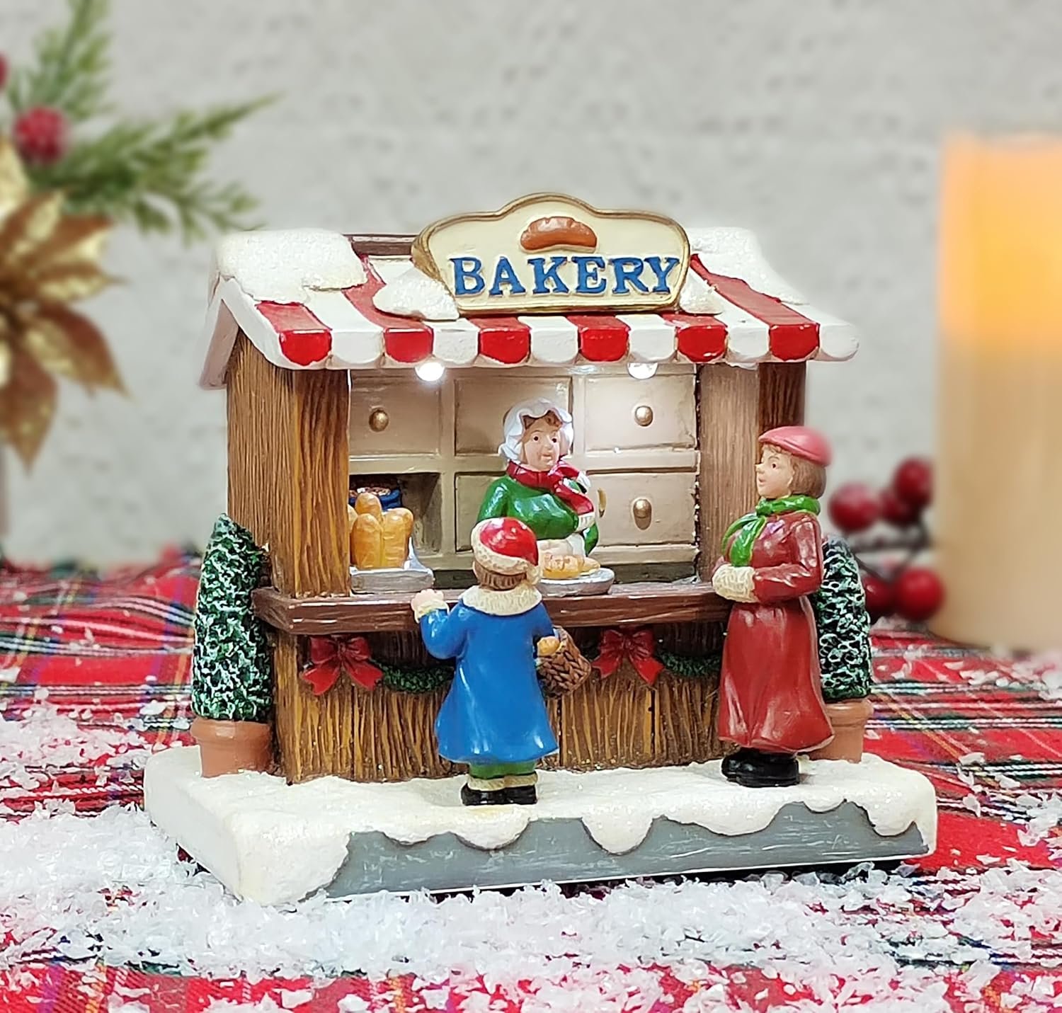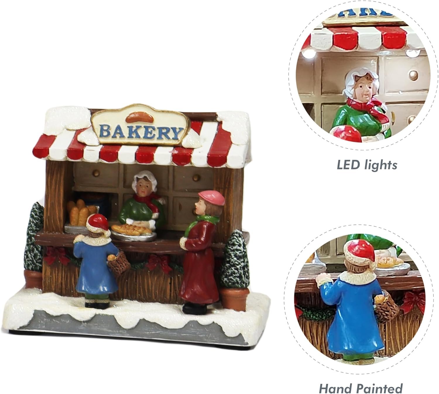 MOMENTS IN TIME 4.06”H Bakery Stand – LED Lights, Battery Operated Christmas Village – Hand-Painted Polyresin
