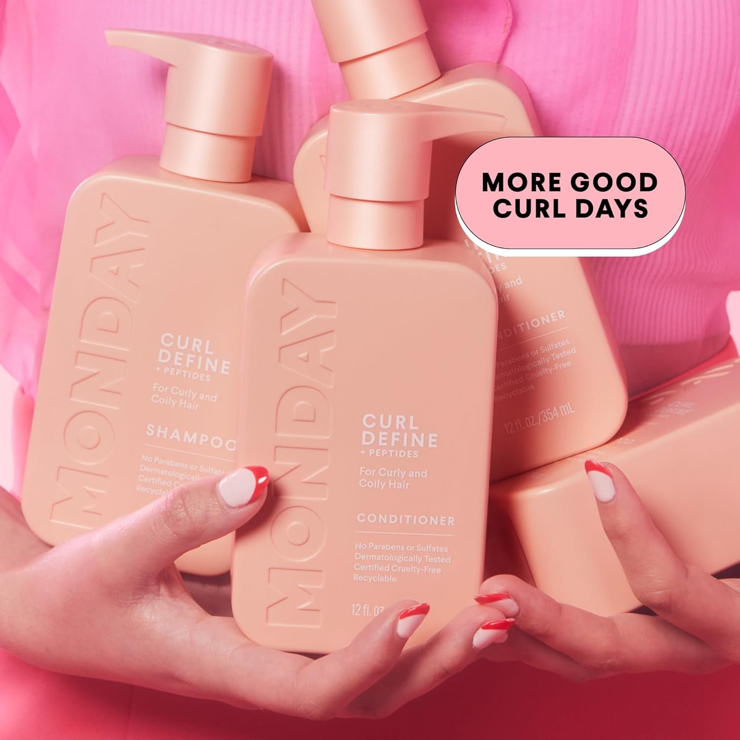CURL DEFINE SHAMPOO & CONDITIONER: Monday Hair care CURL DEFINE Shampoo is a supportive formula containing hydrating Peptides and gentle natural ingredients such as Coconut Oil to tame frizz and enhance shine—while nourishing and strengthening hair.