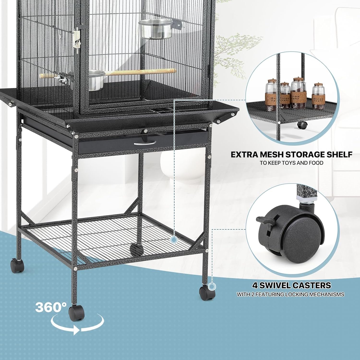 Multiple Access Doors & Comfortable Living Environment – This bird cage features convenient doors with safety locks to prevent escapes, 3 wooden perches, and 2 stainless steel food containers, offering easy access and a safe, healthy space for your birds.