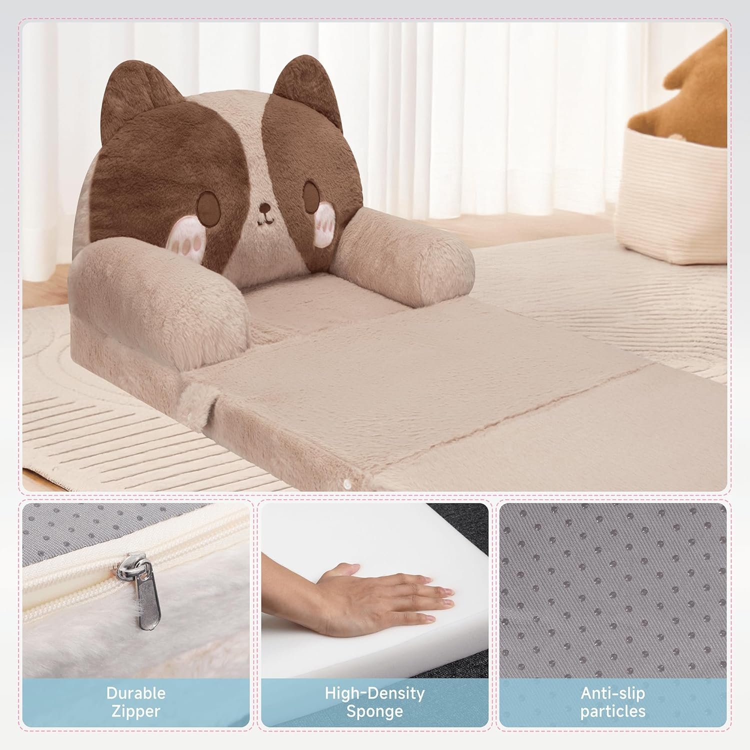MONKISS Kids Couch, Comfy Toddler Chair, 2 in 1 Fold Out Kids Sofa to Lounger, Baby Sleeper Chair, Toddler Furniture, Birthday Gifts for Boys and Girls, 18+ Months, Cute Dog
