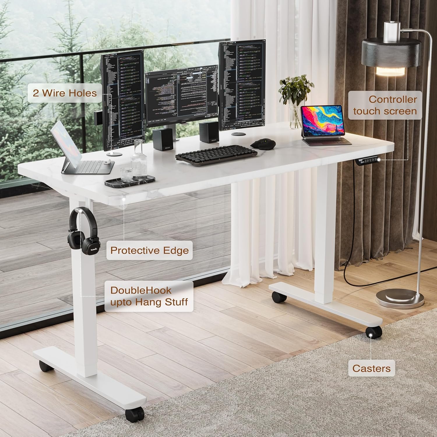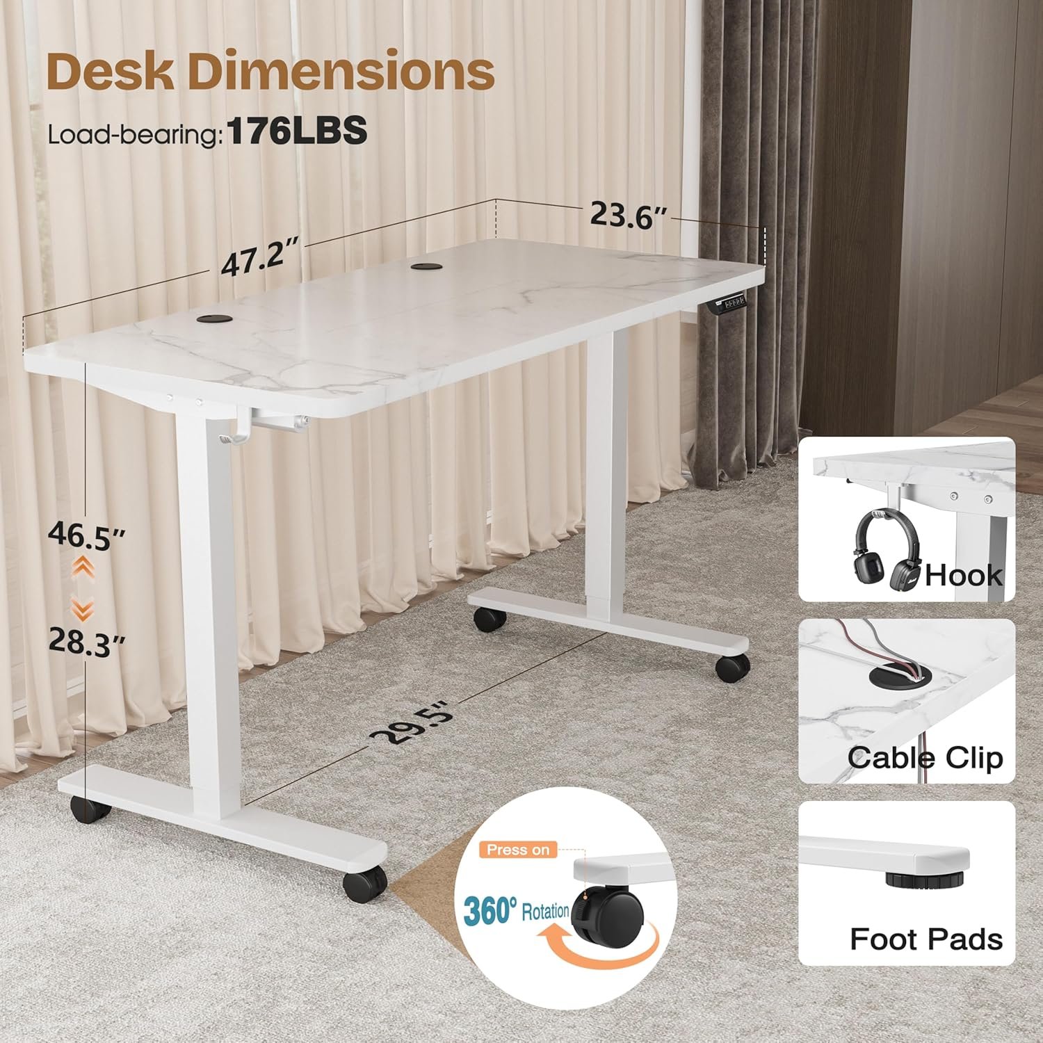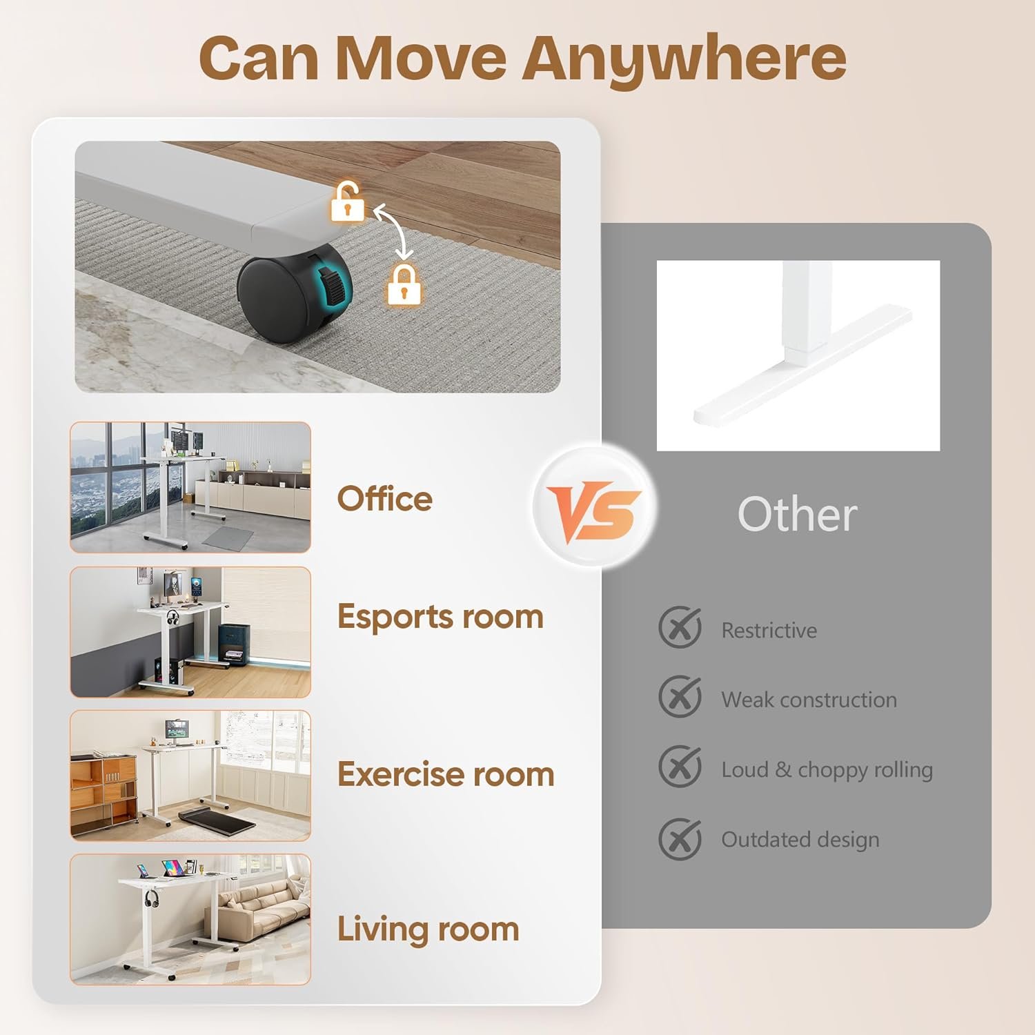 【Exceptional Stability】: This electric standing desk boasts a solid industrial-grade steel frame and aerospace-grade lifting column connector, (still stable & secure after testing 100,000 times).Providing a 188 lbs weight capacity .Come with detachable and lockable caster, make your desk moves eaily.