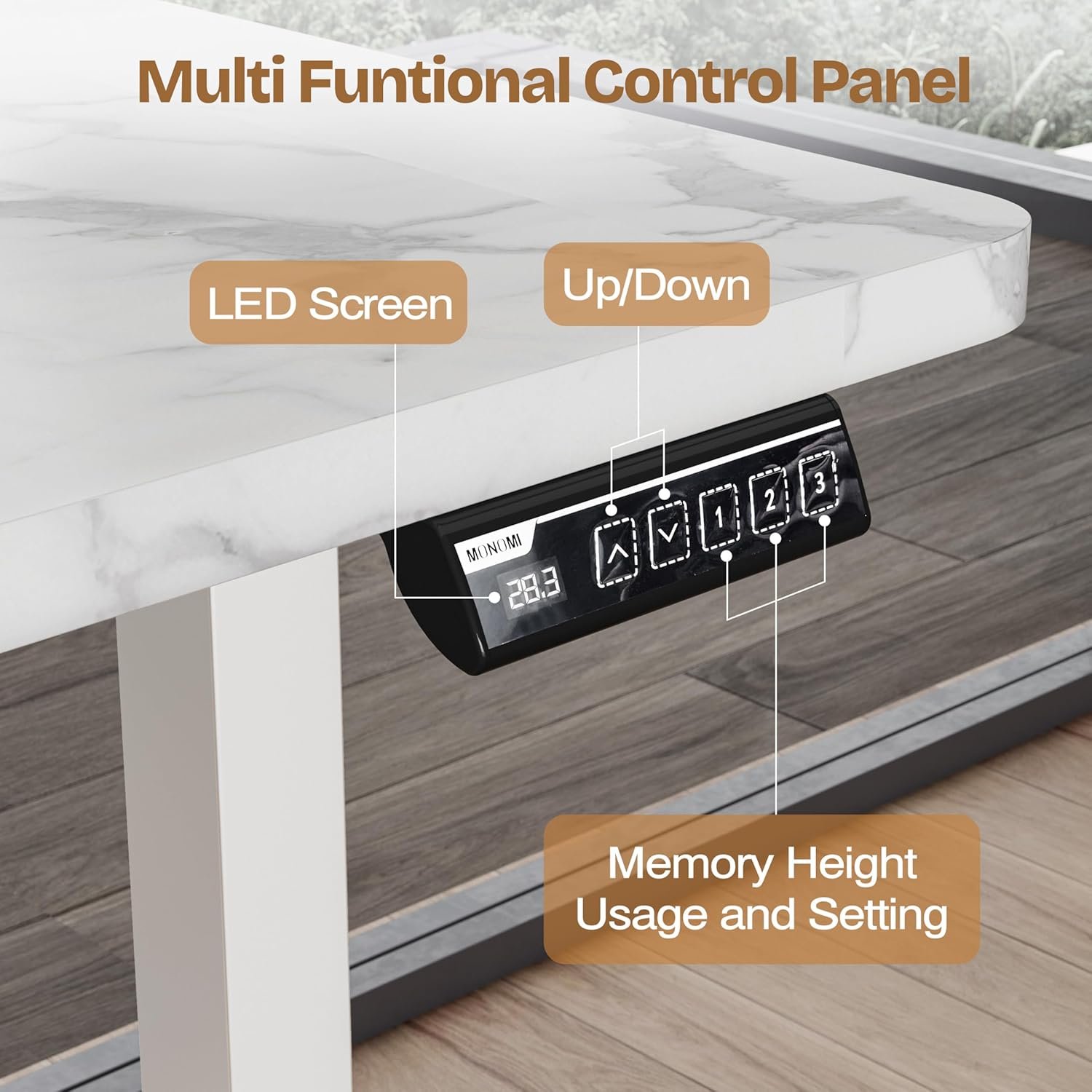 Customers find the standing desk well-made, easy to assemble with good instructions, and appreciate its appearance, with one noting its marble design. Moreover, the desk receives positive feedback for its functionality, with one customer mentioning the control piece for raising and lowering works great. Additionally, customers like its height adjustment features, with the ability to pre-set different heights, and appreciate its quiet motor operation. They also consider it good value for money.