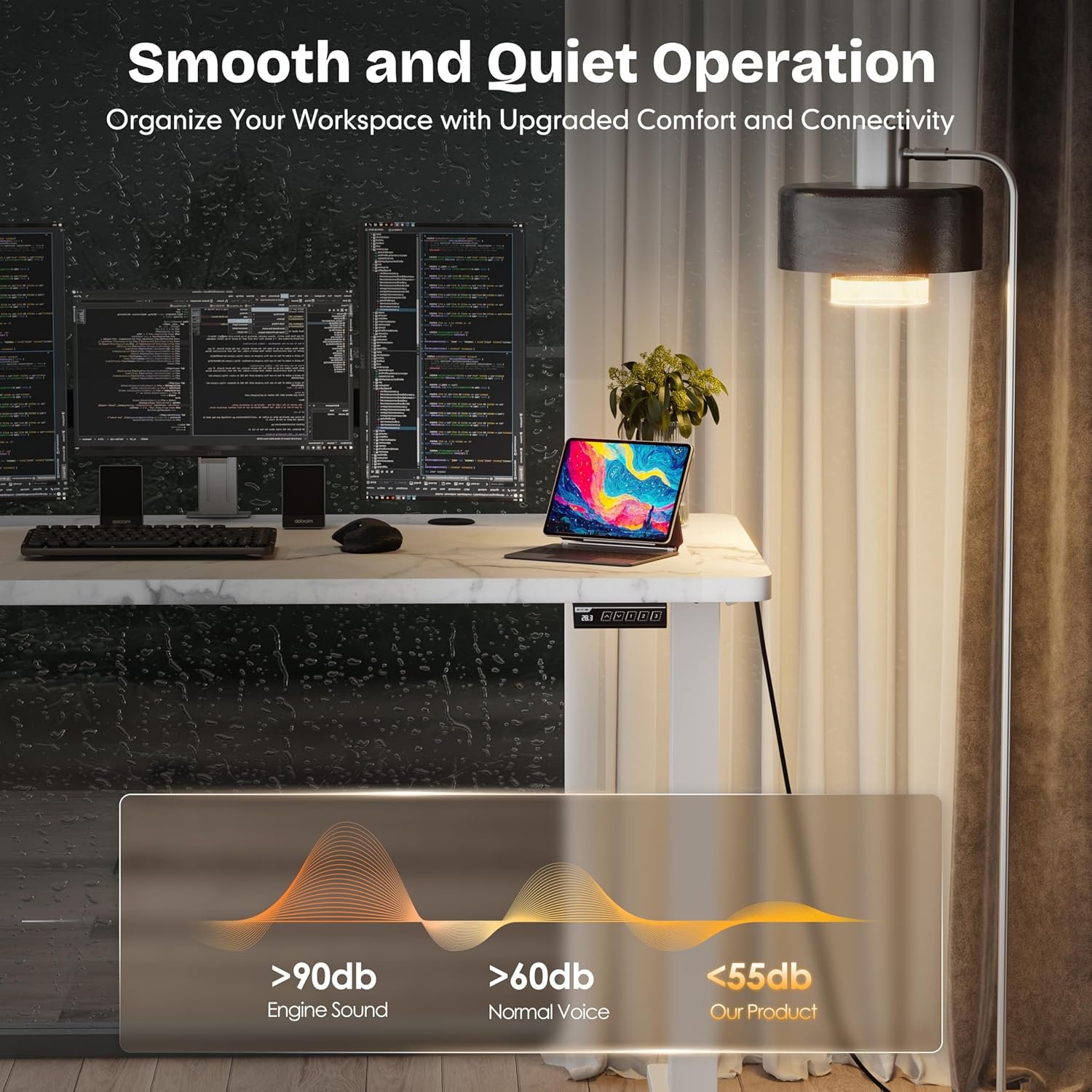 【Ergonomic Work Space】: Ergonomic desktop design is more comfortable for you to use,and meeting US federal and state safe air standard’s Large 55”x 24” inch desktop offers enough room for ongoing projects and office supplies.