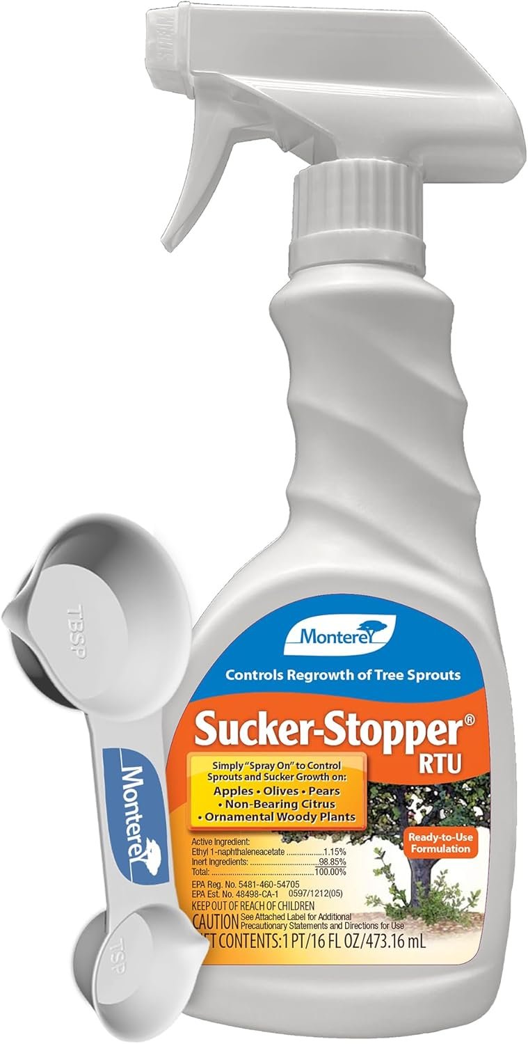 Monterey Sucker Stopper Spray Bundled with Garden Measuring Spoon, Ready-to-Use Sprout Growth Regulator, Controls Regrowth of Tree Sprouts, 16 oz RTU