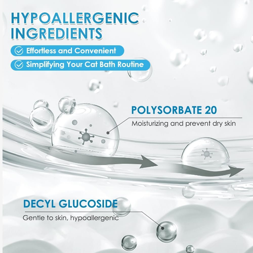 😸 A COMFORTABLE EXPERIANCE – Our waterless cat shampoo( or waterless shampoo) offers a Ph Balanced, neutral clean, mild scent and tearless formula, providing a comfortable and cozy experience to your cat while giving it a cat bath.