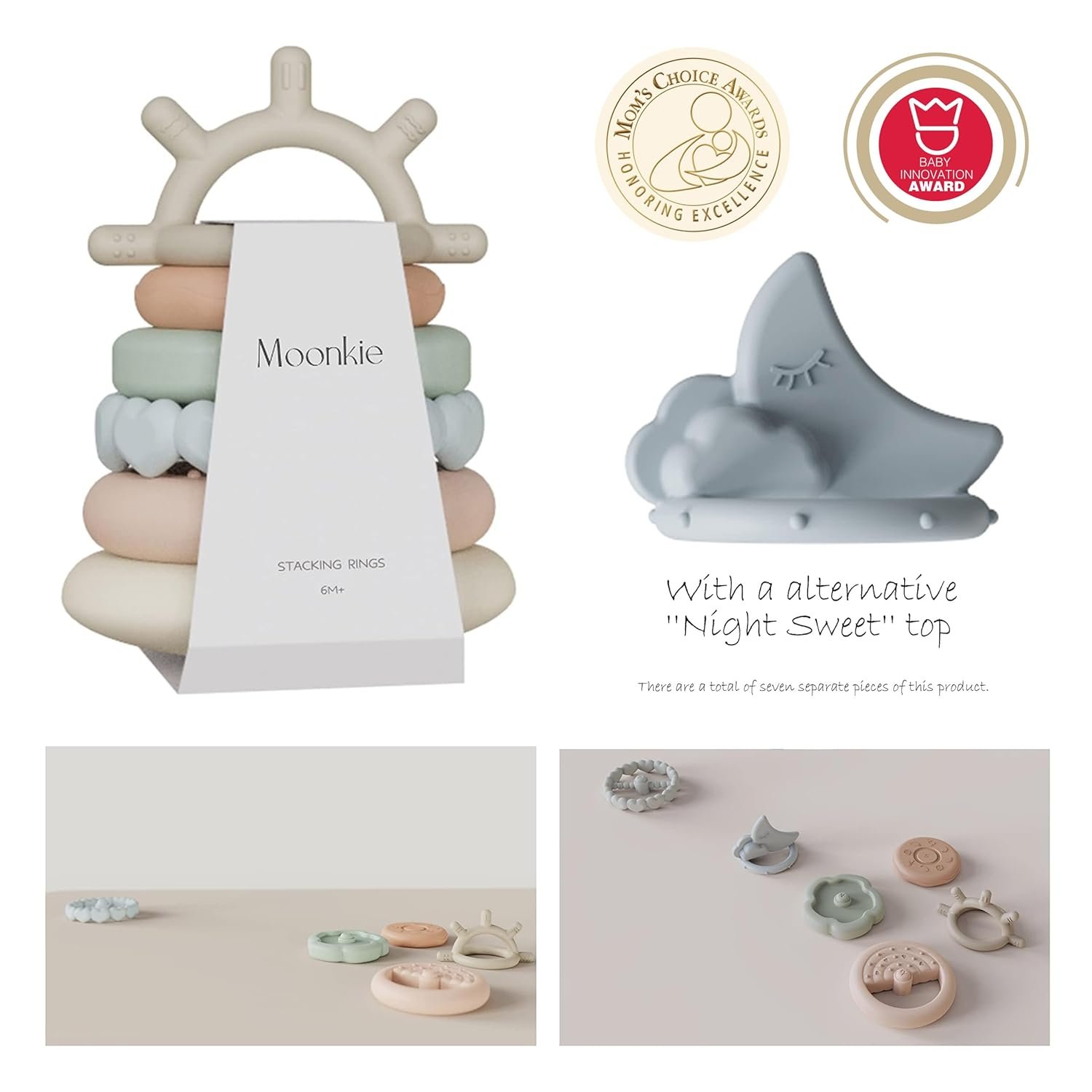 ✨ PREMIUM QUALITY: Moonkie’s 7-piece stacking ring toys are made of high-quality food-grade silicone, without any fillers or off-odors. These soft baby toys are BPA and Phthalate-free, making them safe for your child to play with and bite freely.
