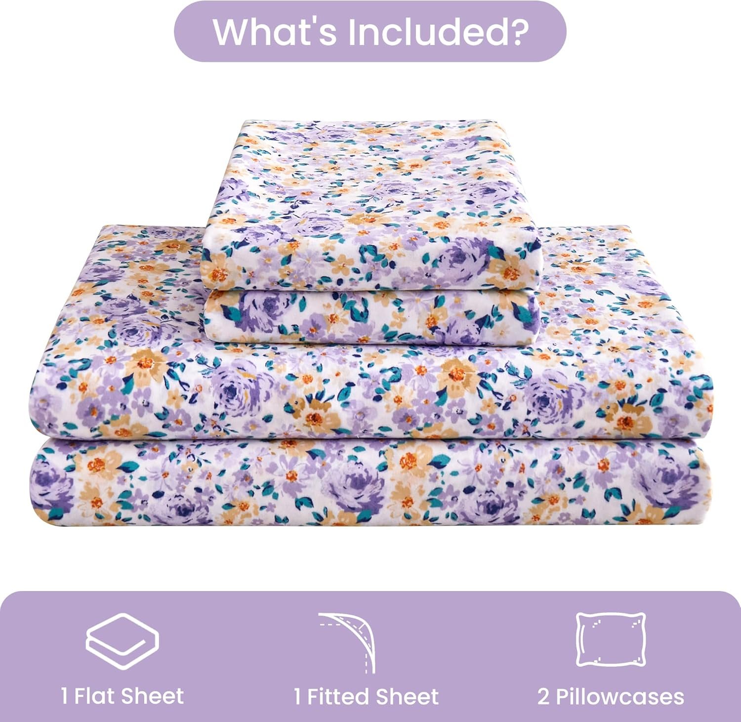 Made from premium brushed microfiber, the purple king floral sheet is soft, breathable, and smooth.