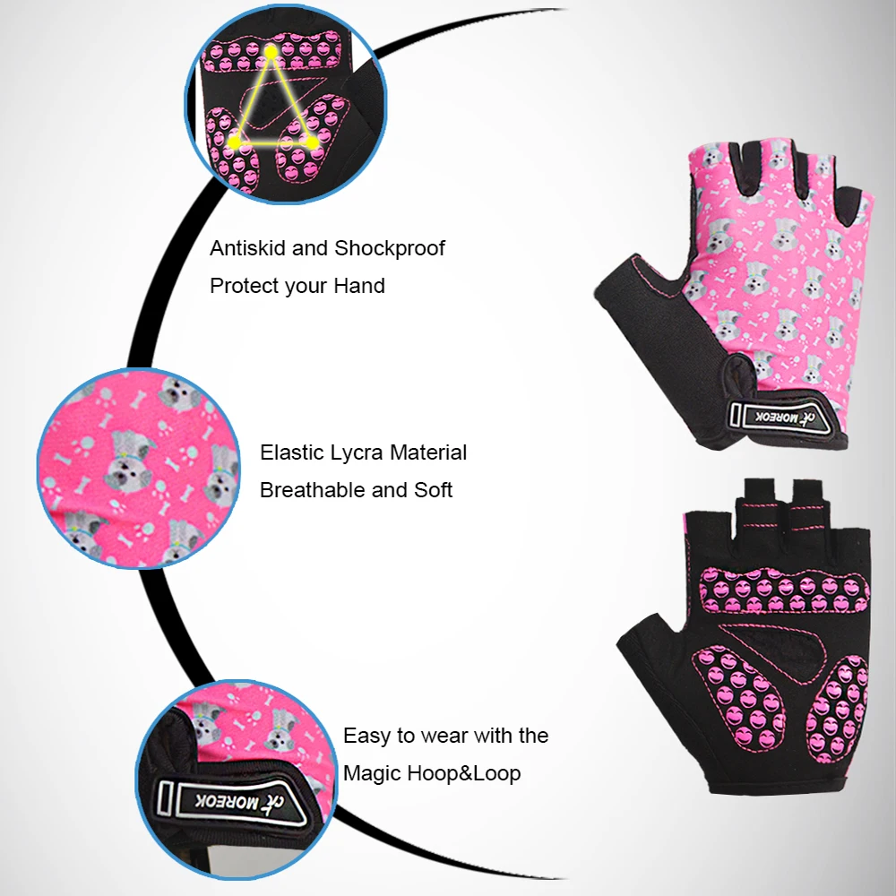 MOREOK Kids Gloves 3MM Pads Monkey-bar Gloves Half Finger Children Cycling Gloves Child Balance Bike Bicycle Gloves boys Girls