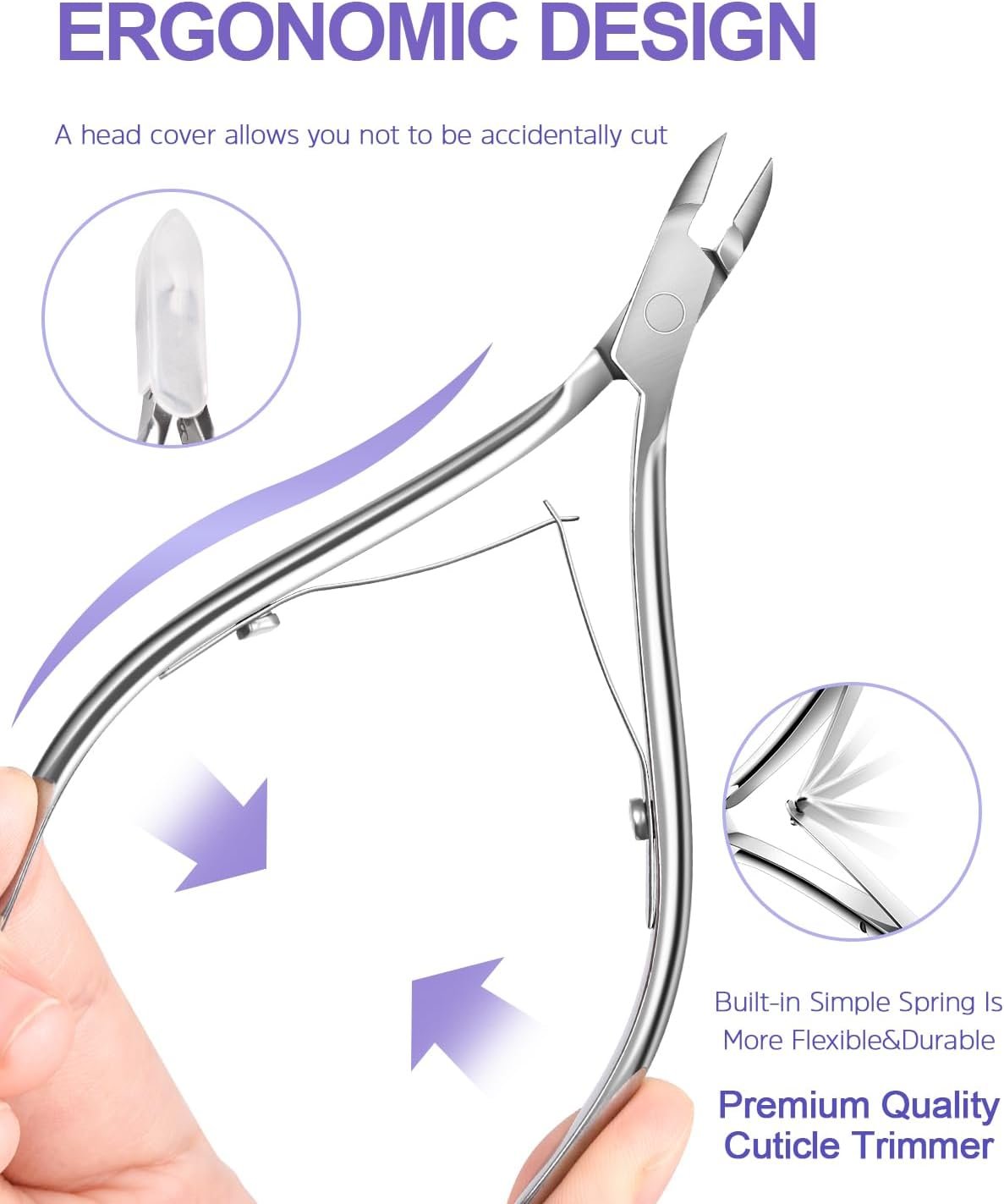 Cuticle Trimmer Set: the stainless steel cuticle clippers for nails are sharper and more efficient for a long time, making sure that the cuticles easily removed. Other 4 pcs manicure tools help you reach nail edge more easily to remove the stubborn debris effortlessly