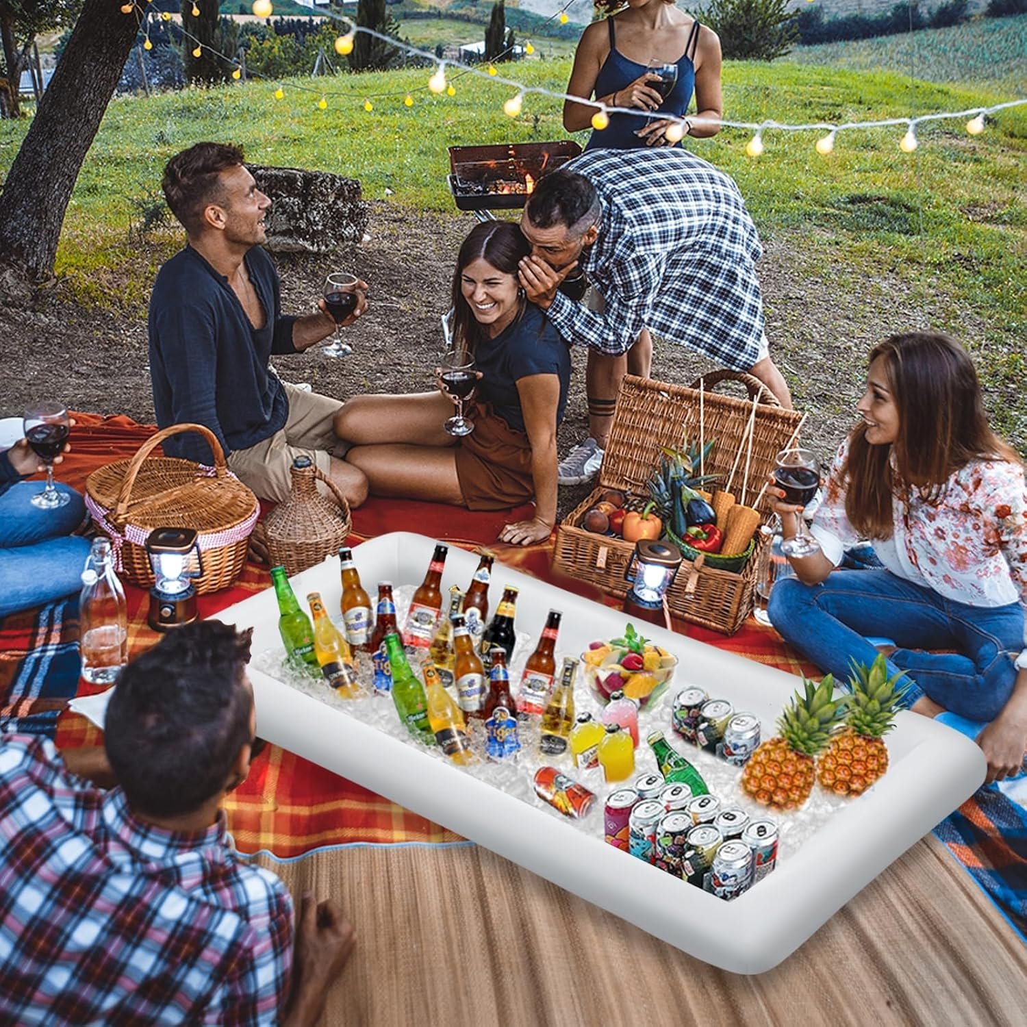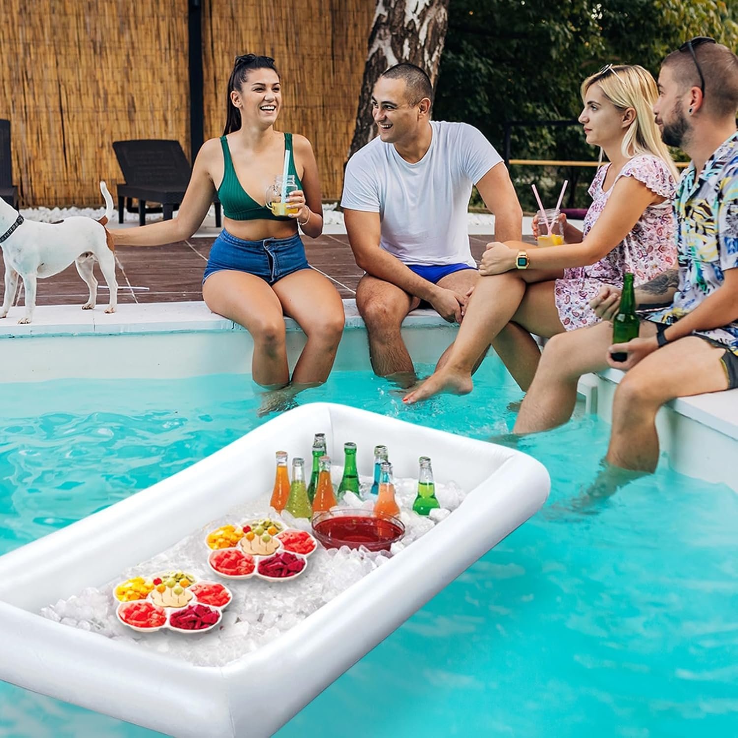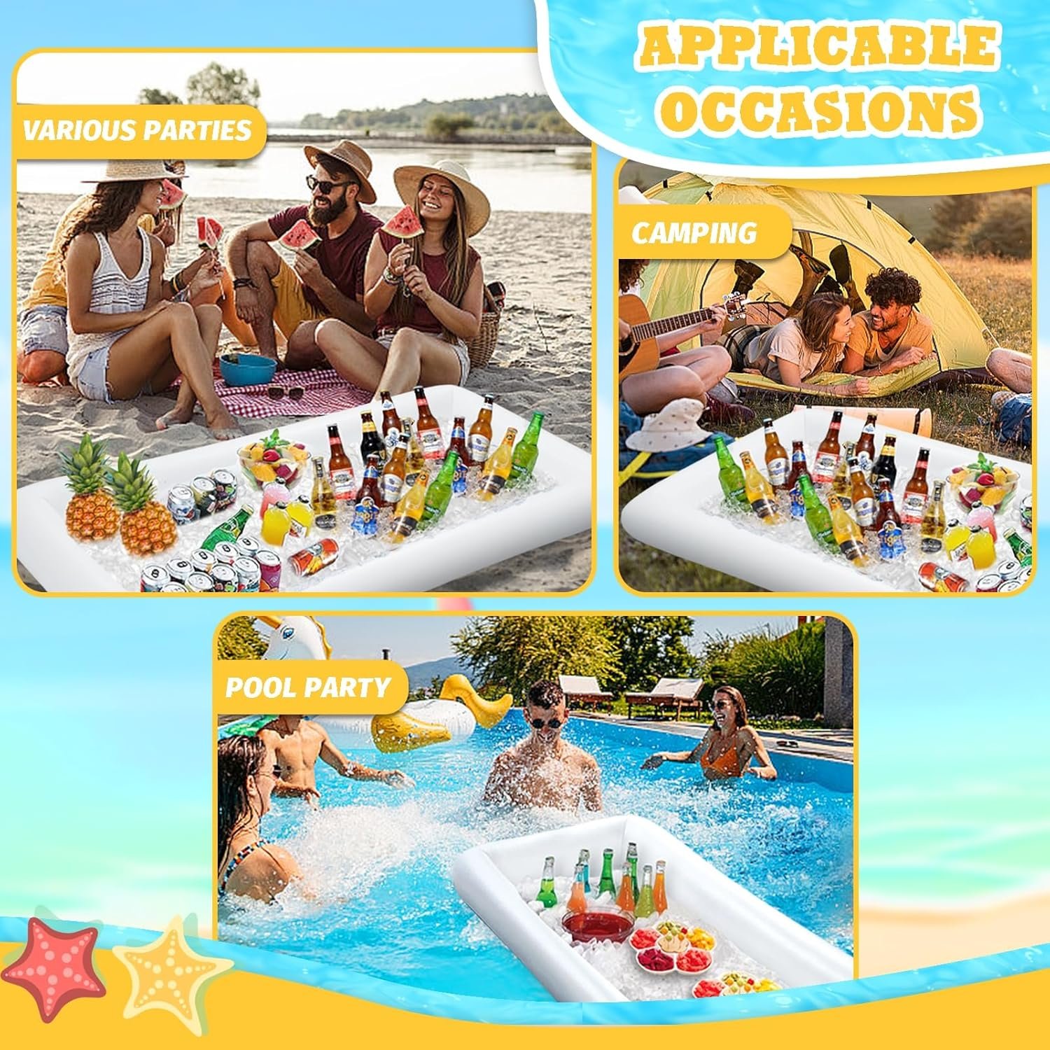 MorTime 4 PACK Inflatable Ice Serving Bar, 53″x25″ Server Tray Pool Buffet Drink Cooler, Ice Tray Food Drink Containers for Summer Parties