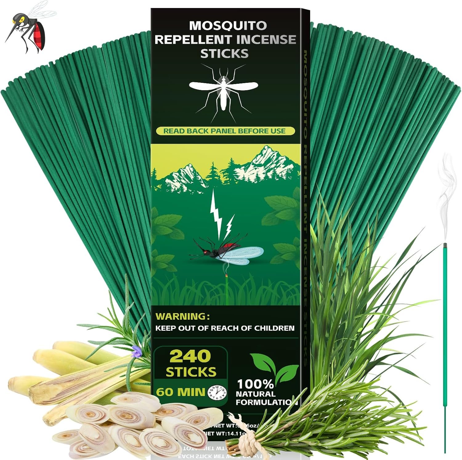 Mosquito Repellent Outdoor Patio, 240 PCS Citronella Oil Mosquito Incense Sticks Indoor Home Pet Family Safe
