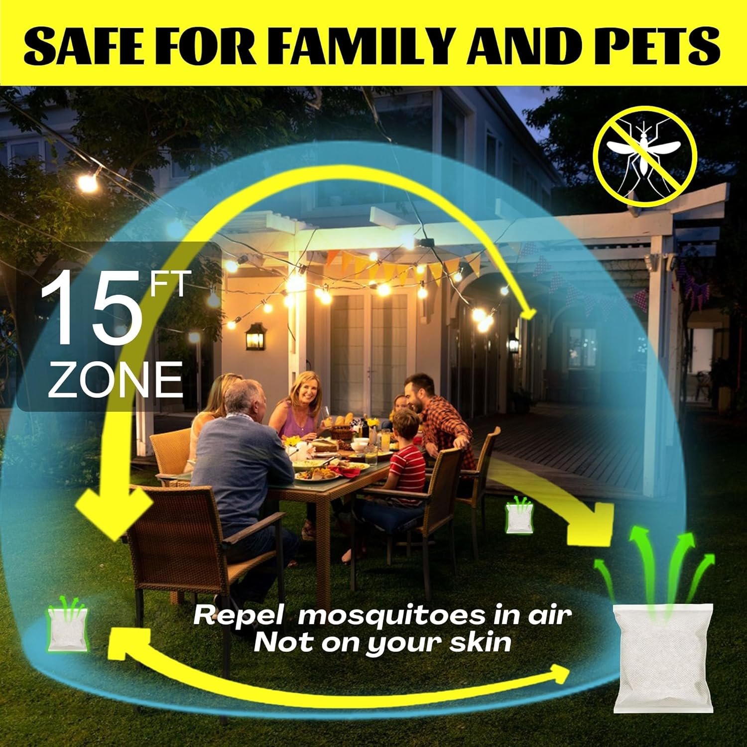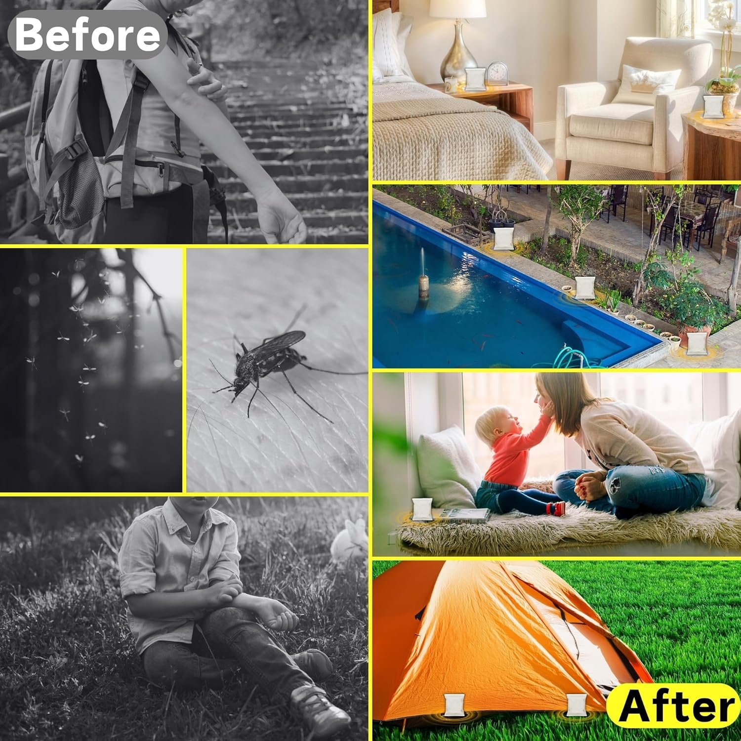 ✅【Multi-Scenario Protection】Defend patios during BBQs, shield tents while camping, safeguard play areas for kids, and create mosquito-free zones indoors. Perfect for pool parties, garden sheds, RVs, and stroller hooks – includes 8/12 pouches to protect multiple areas simultaneously