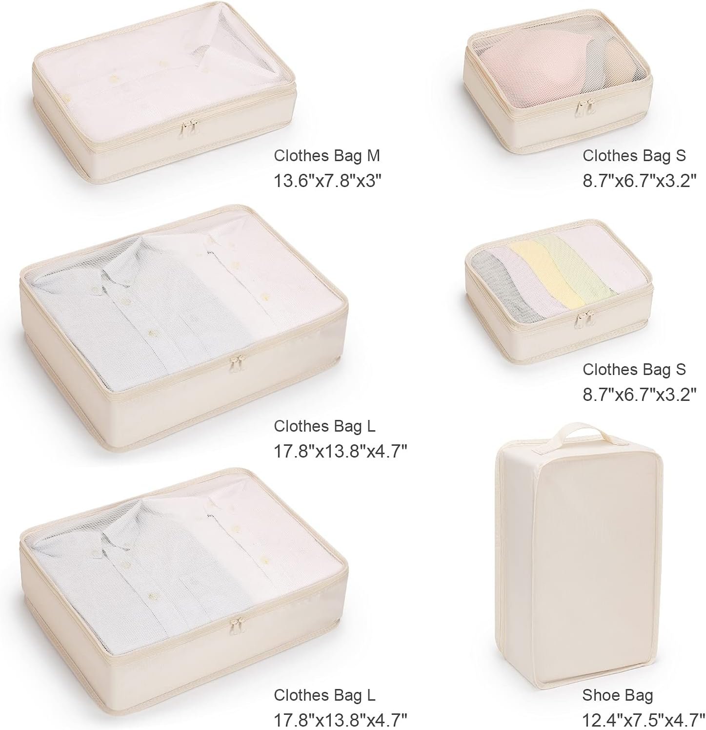 Mossio 6 Set Packing Cubes with Shoe Bag – Lightweight Travel Luggage Suitcase Organizers