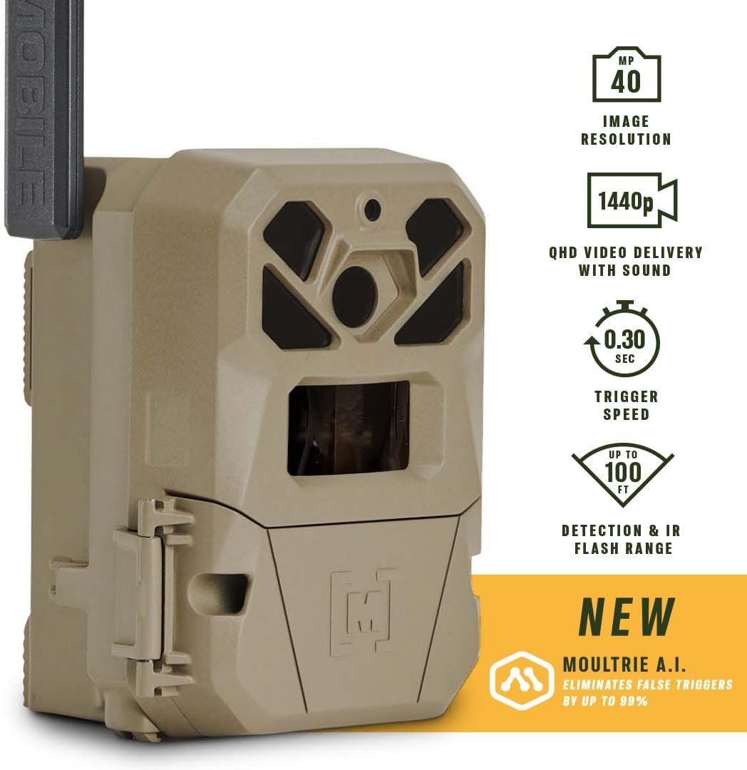 Moultrie Edge 2 Pro Cellular Trail Camera – Auto Connect Nationwide 4G LTE – On Demand 40MP Photo – 1440P Video with HD Audio – Ai False Trigger Elimination – 100 Ft Detection Range – No-Glow Flash