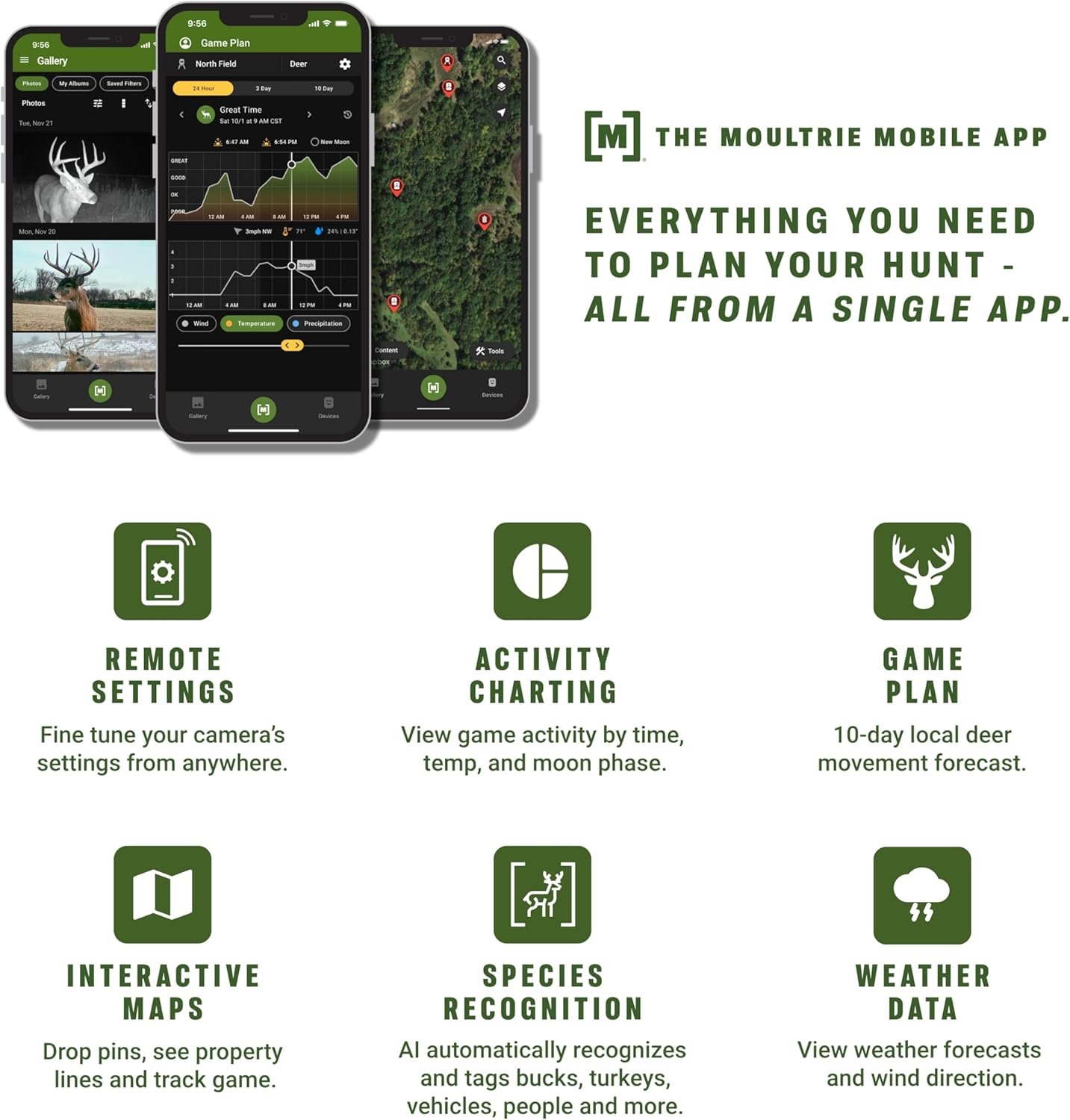 Remote On Demand Control – Use the Moultrie Mobile App to trigger the camera remotely, update settings, or check camera health anytime, anywhere. Ideal for pre-entry and post-entry scouting or security applications.