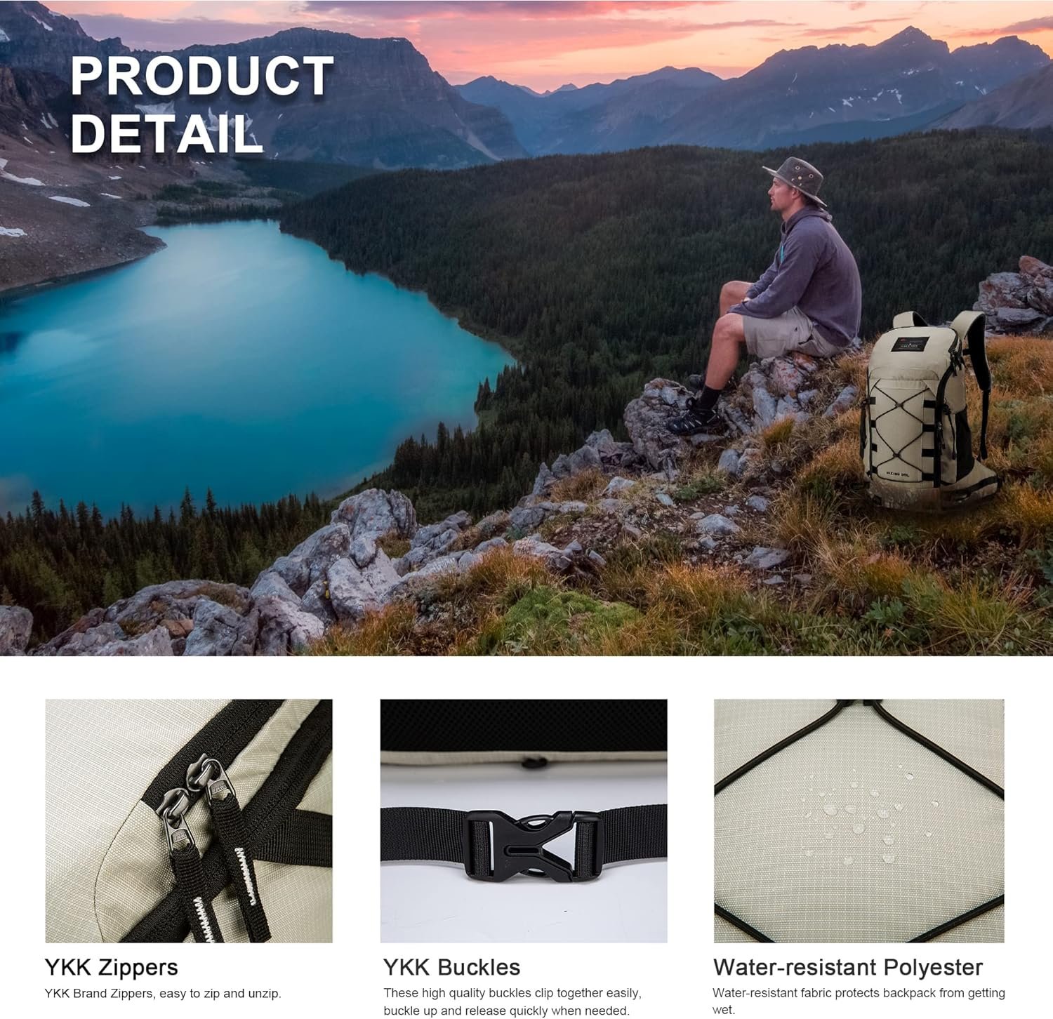 【Durable Material】: This 35L hiking backpack is made of durable polyester and is easy to maintain. The zippers and buckles are all YKK, which is smooth and not easy to fall off.