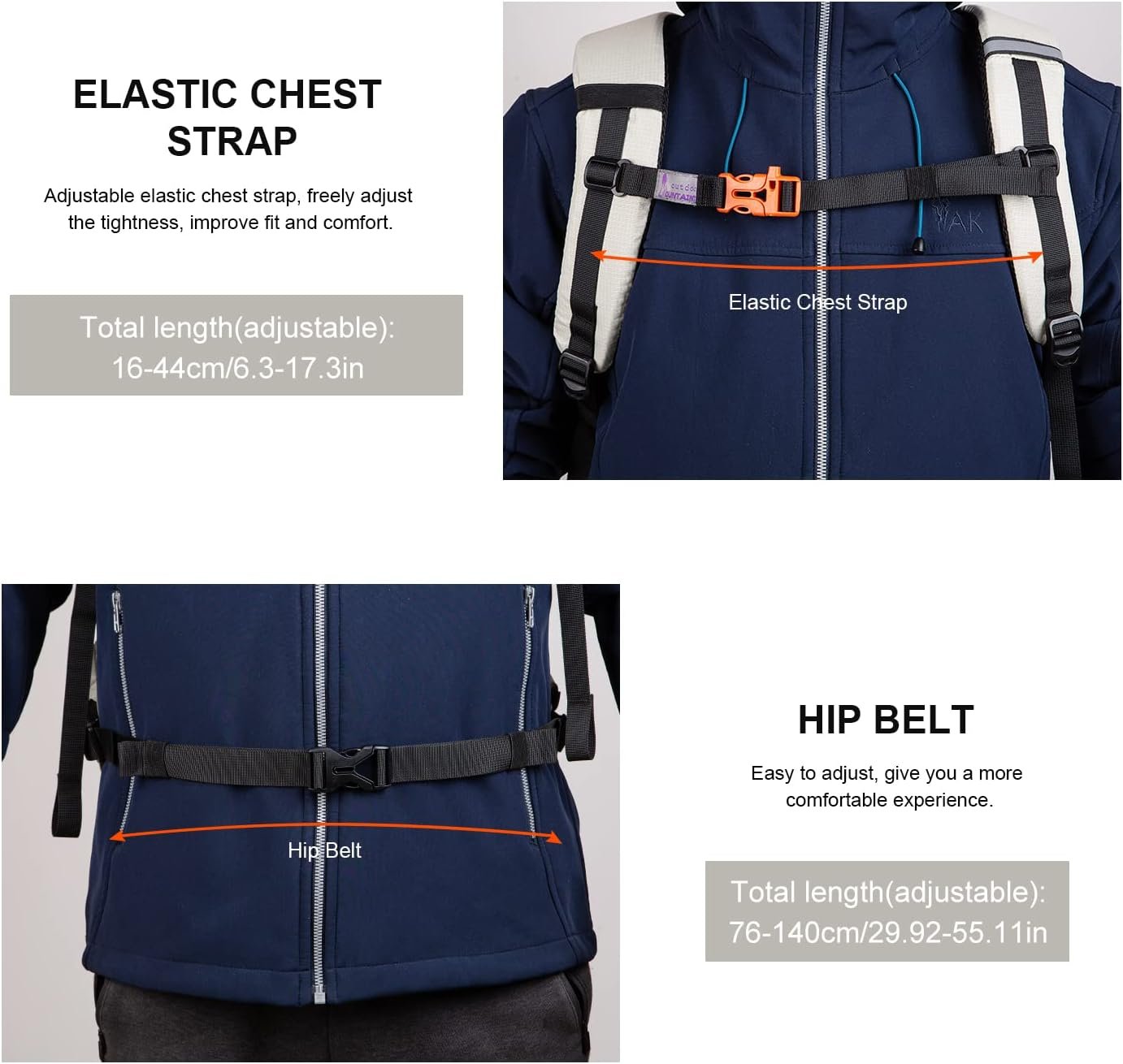 【Flexible Design】: This hiking backpacks features an adjustable waist belt suitable for waist circumferences of 29.92-55.11 inches, and the abdominal belt can be removed by itself. The design of the breathable sponge back panel and shoulder straps helps to relieve shoulder pressure and reduce the overall burden when hiking or climbing outdoors.