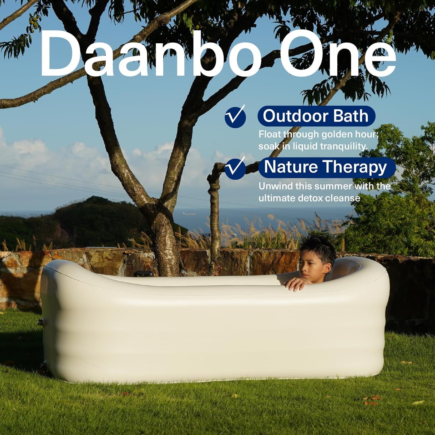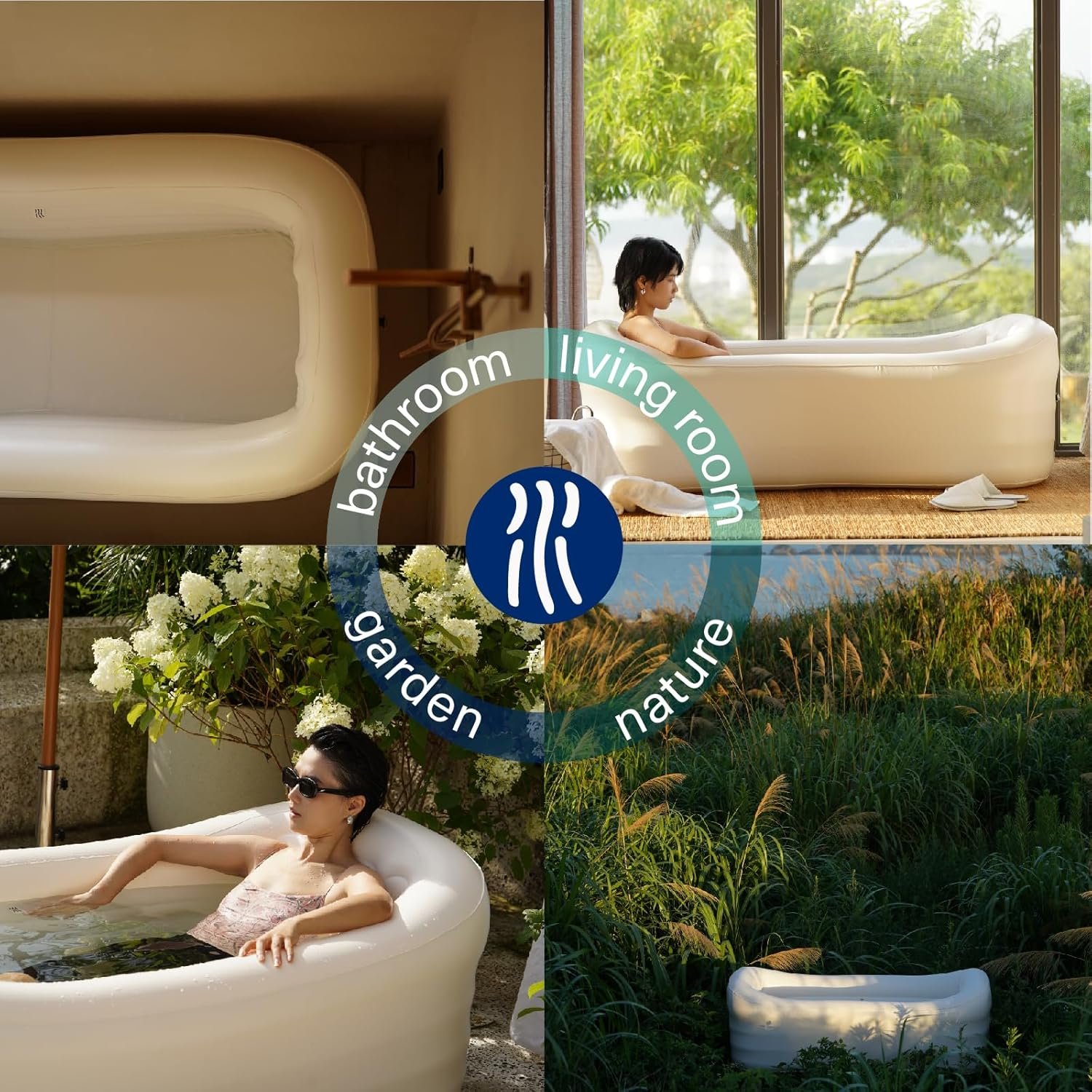 Mozoo Inflatable Bathtub 62”L X 34”W, Portable Bathtub For Adult, Unmatched Durability, Anti-Leak Drainage System, 2-Minute Setup, Space-Saving Foldable Design
