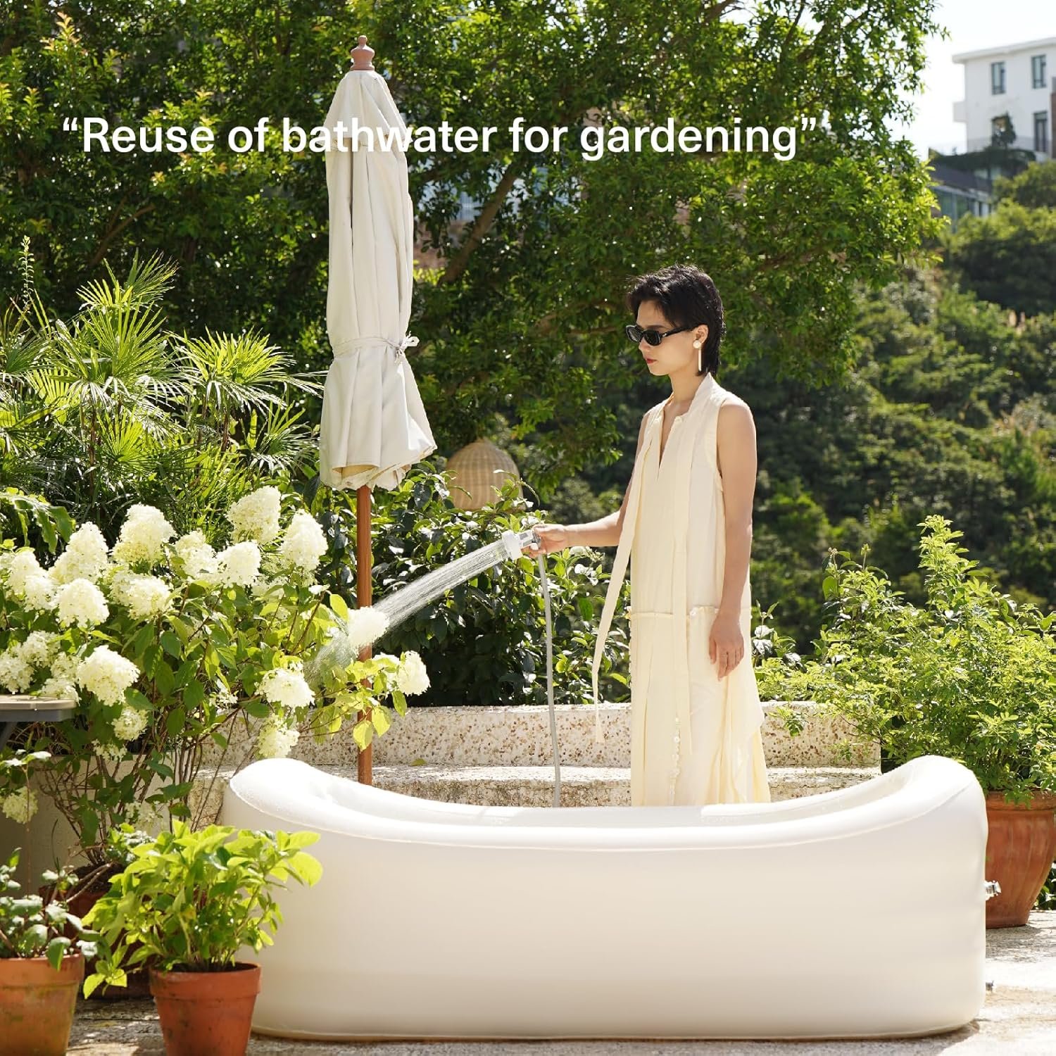 Sustainability in Mind: 1/4 hose adapters let you redirect bathwater from Inflatable bathtub for Shower—try repurposing it for plants or cleaning