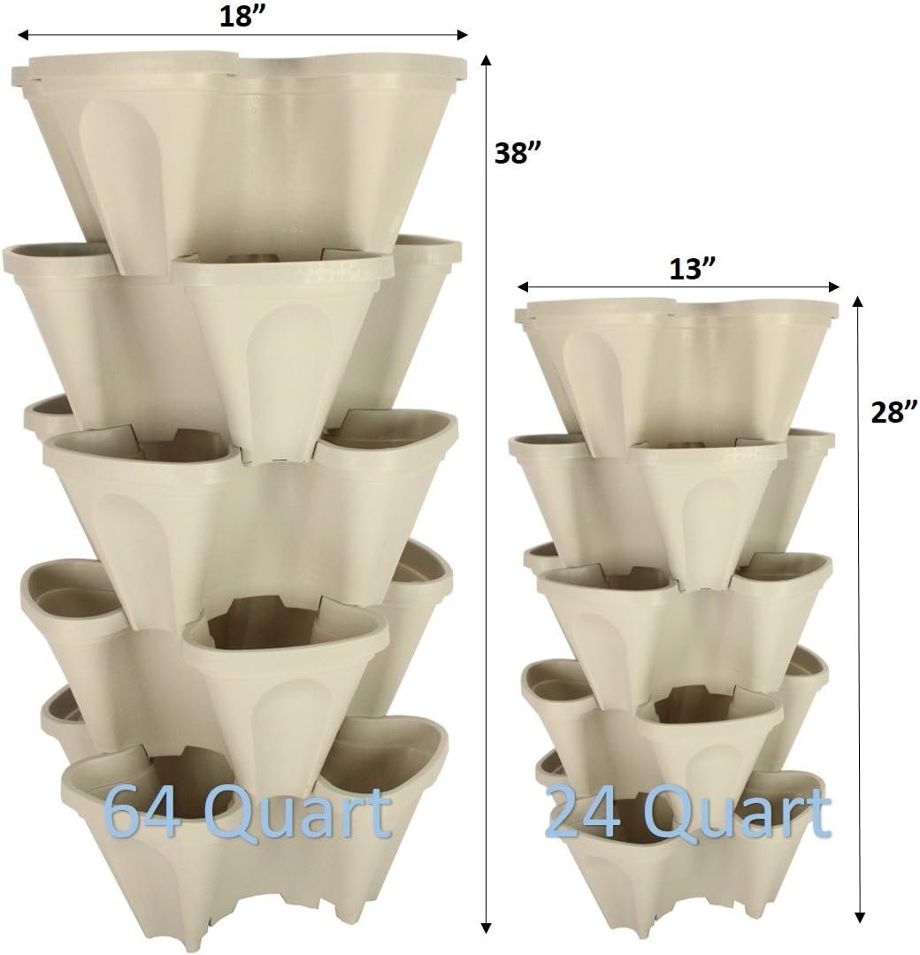 (5) Large Heavy Duty 18 Inch Diameter Stackable Planters – 16″x16″x38″ – 64 Quart