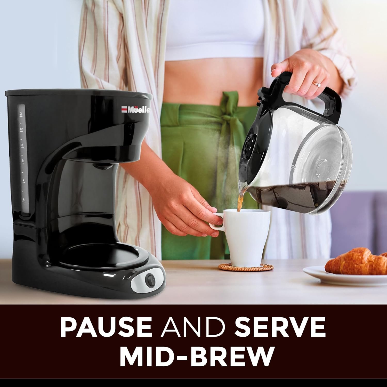 Mueller 12-Cup Drip Coffee Maker – Borosilicate Carafe, Auto-Off, Reusable Filter, Anti-Drip, Keep-Warm Function, Clear Water Level Window Coffee Machine, Kitchen Essentials & Accessories