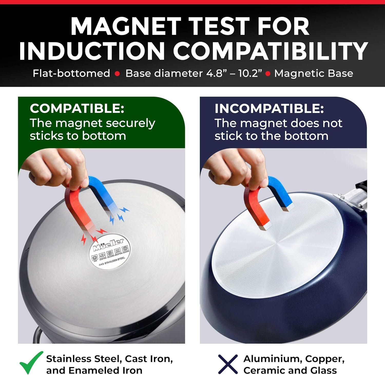 Energy-Friendly: Suitable for induction cookware only with flat ferrous bases (test with a magnet) such as cast iron, enameled steel, or magnetic stainless steel with base diameter between 4.8”-10.2”. The powerful induction burner only heats the diameter of the pan, so no energy is wasted. Plus heat is instant and evenly distributed, cooking your food 50% faster than conventional gas or electric cooktops.