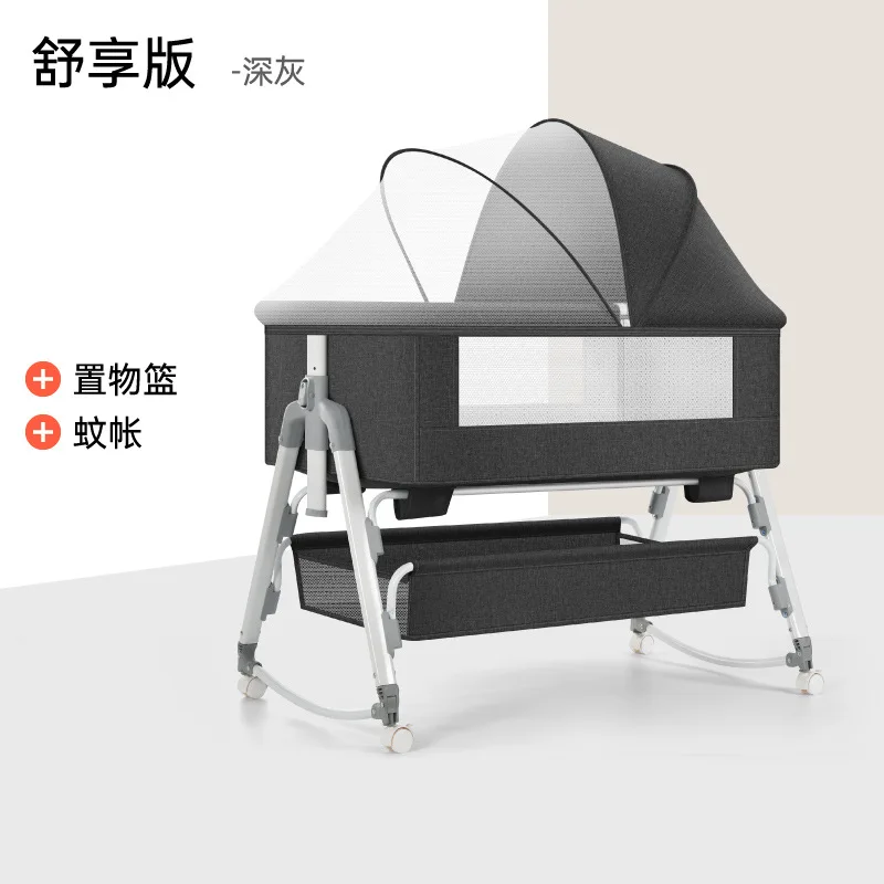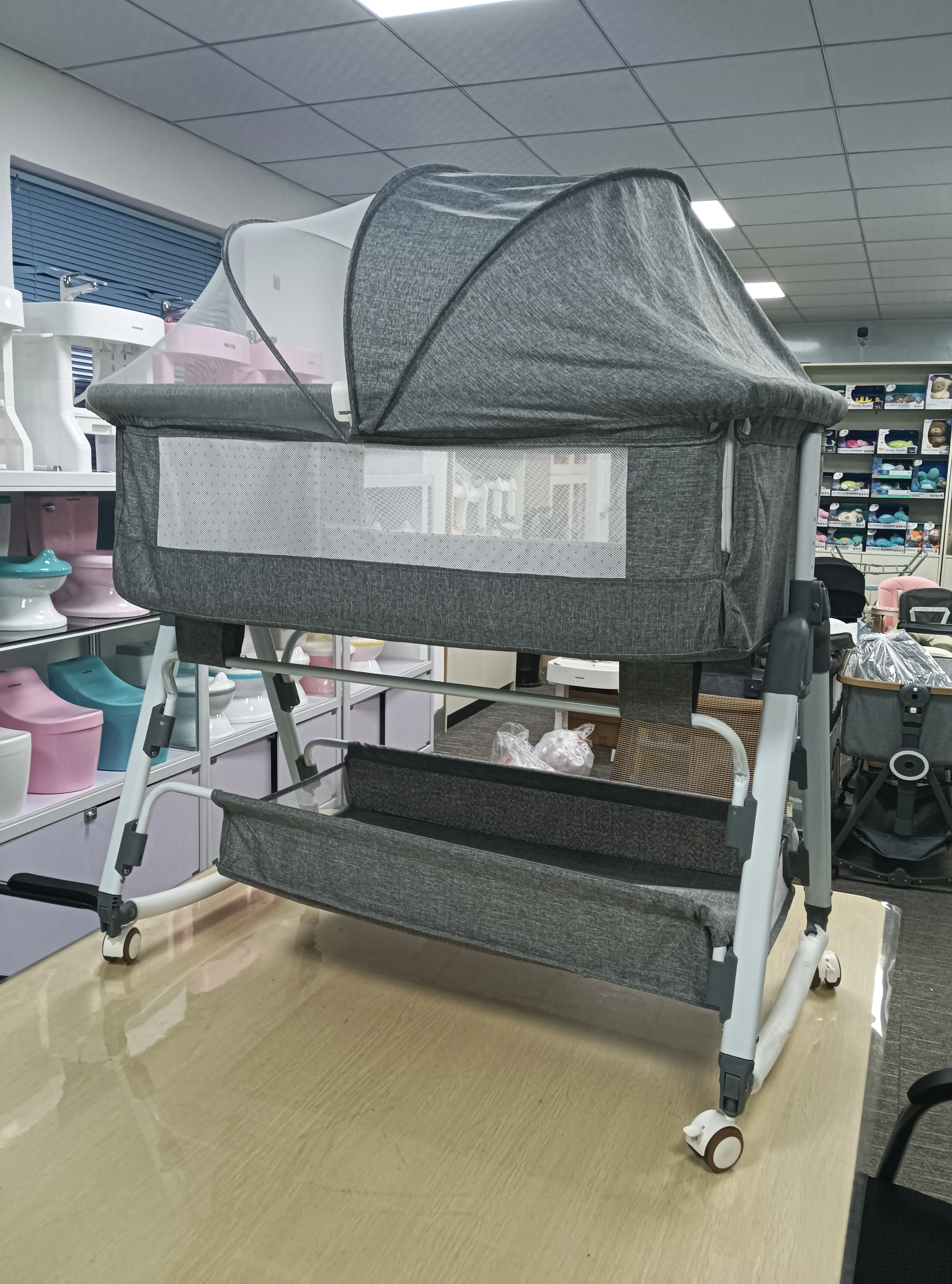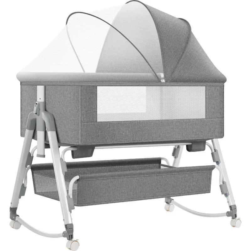 Multi Functional Baby Crib with Foldable Height Adjustment Splicing, Portable and Movable Bedside Swing, Cradle, Sleeping Bed
