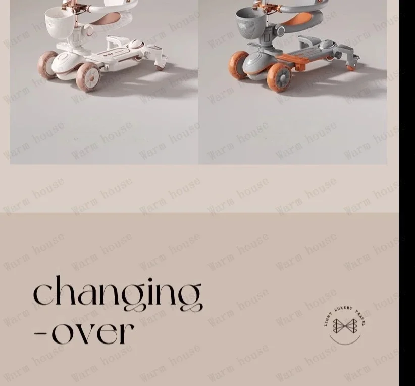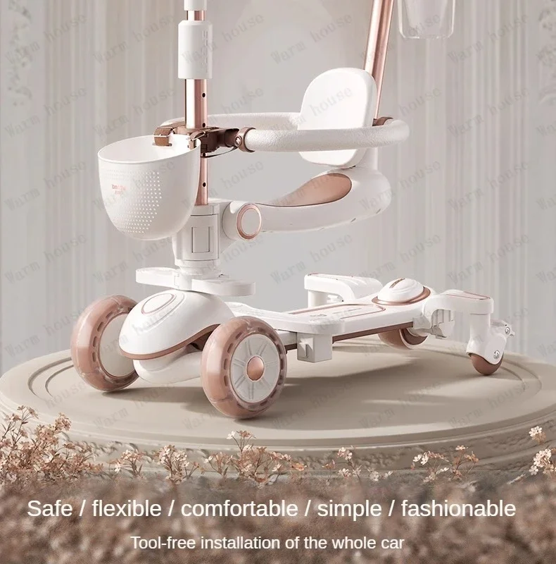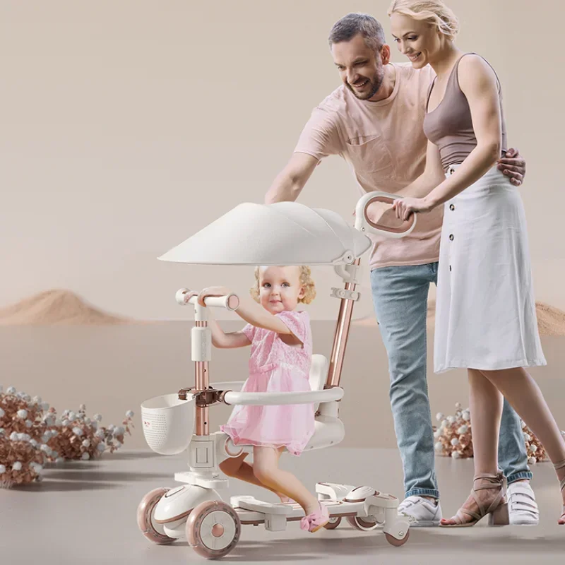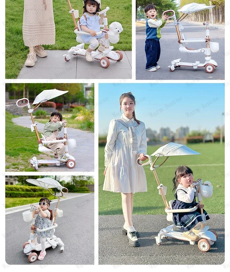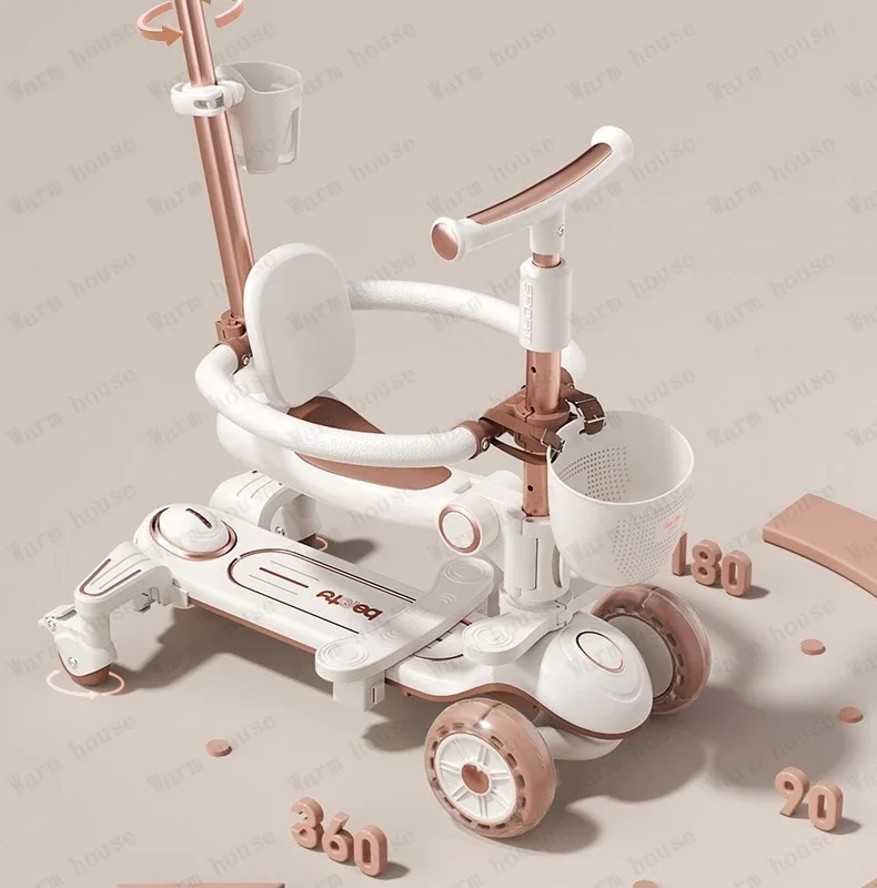 Multifunctional Baby Stroller 6in1 Adjustable Push Rod with Children’s Scooter Portable Baby stroller with skateboard for kids