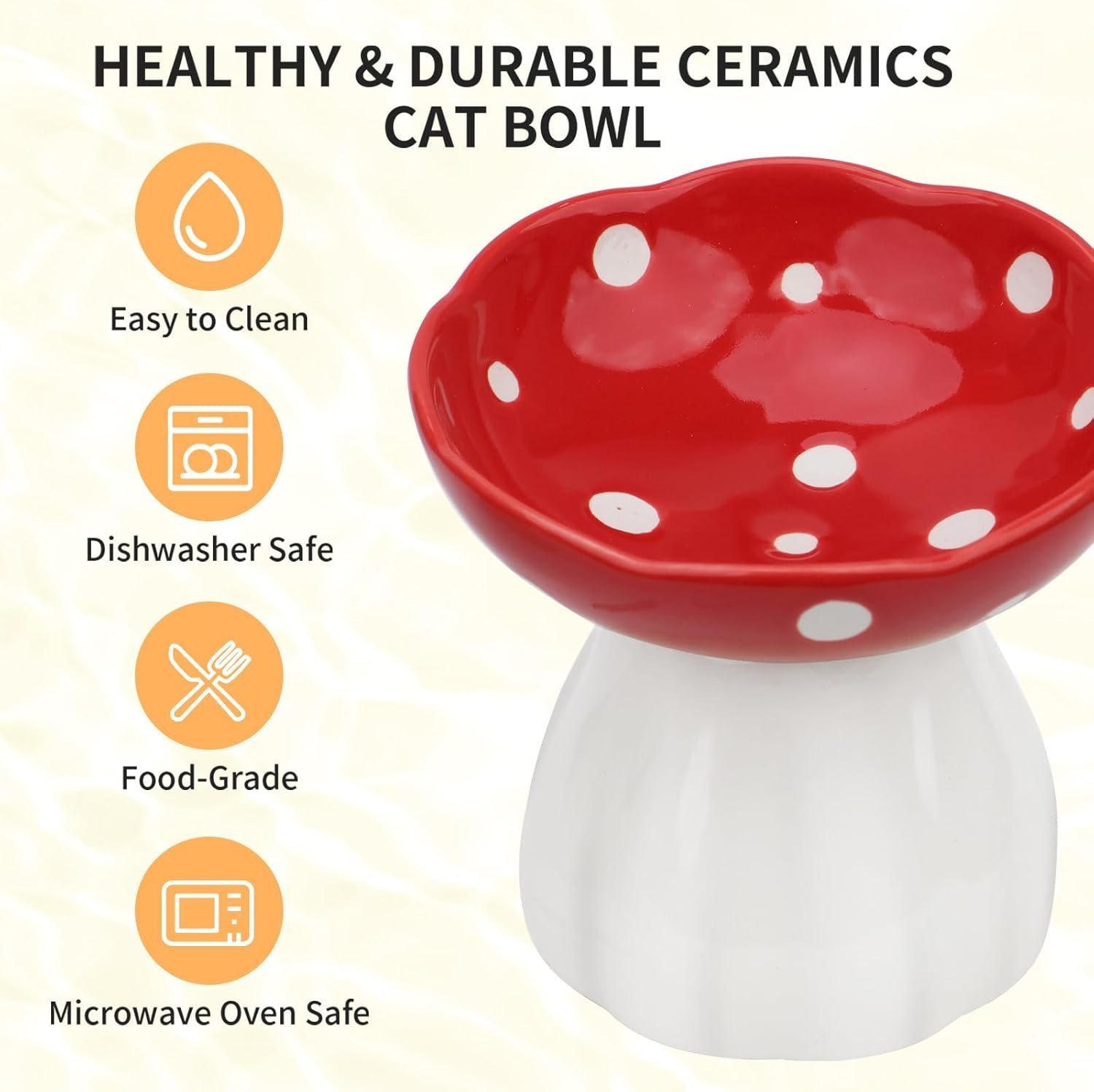 Adorable Mushroom Pet Bowls as Home Decor: The whimsical mushroom-shaped cat dish doubles as cute kitchen decor. These stylish ceramic bowls complement modern farmhouse or boho pet accessories. Great gift for cat lovers. Suitable for food/water separation!