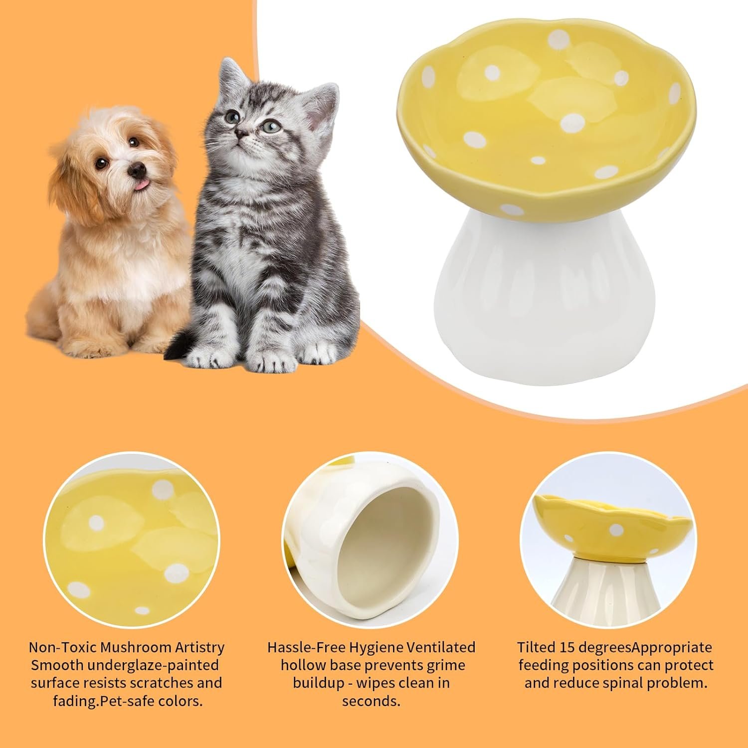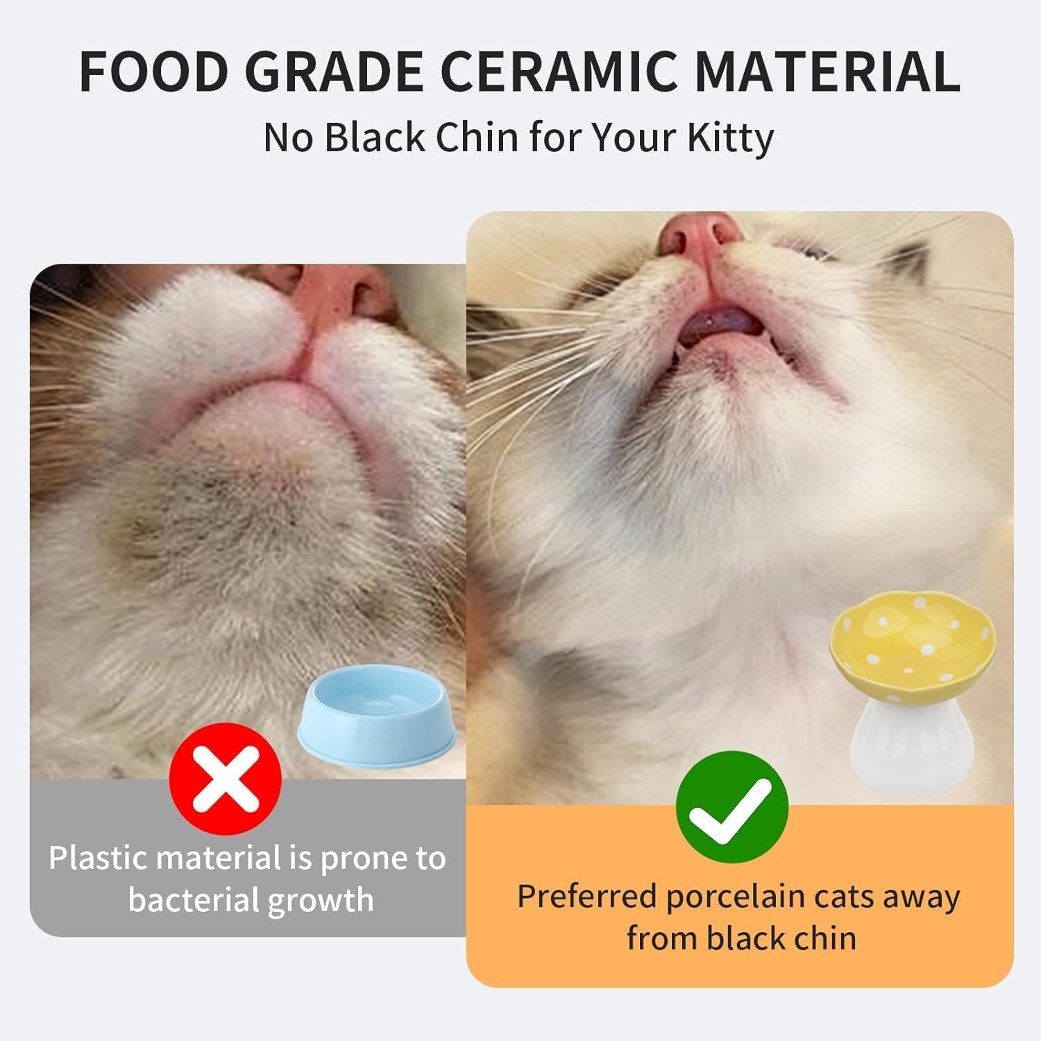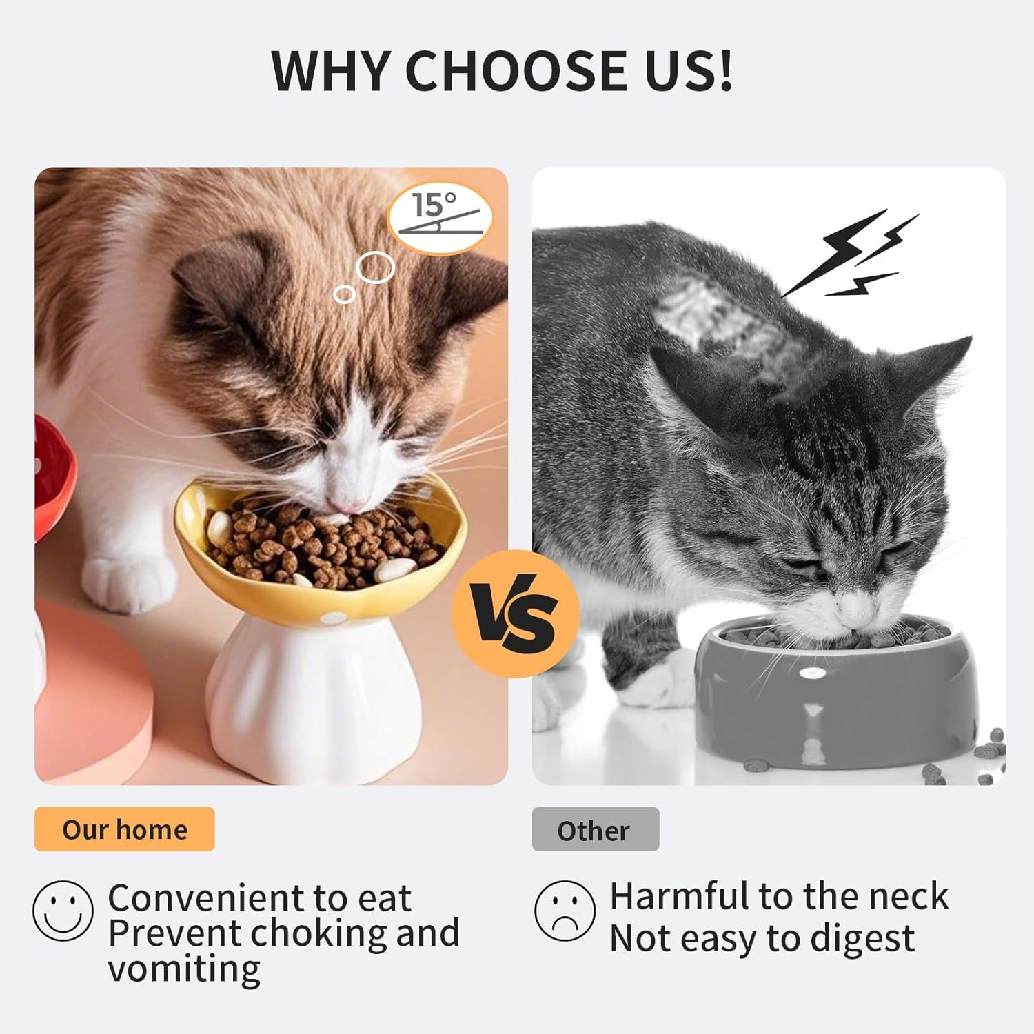 Elevated Design Reduces Neck Strain & Vomiting: Our 4.52-inch raised ceramic cat bowl promotes proper posture to minimize cervical stress in cats, while the 15° tilted cat dish uses gravity to slow eating and prevent regurgitation. Ideal for indoor cats with digestion issues or senior cats needing extra comfort.