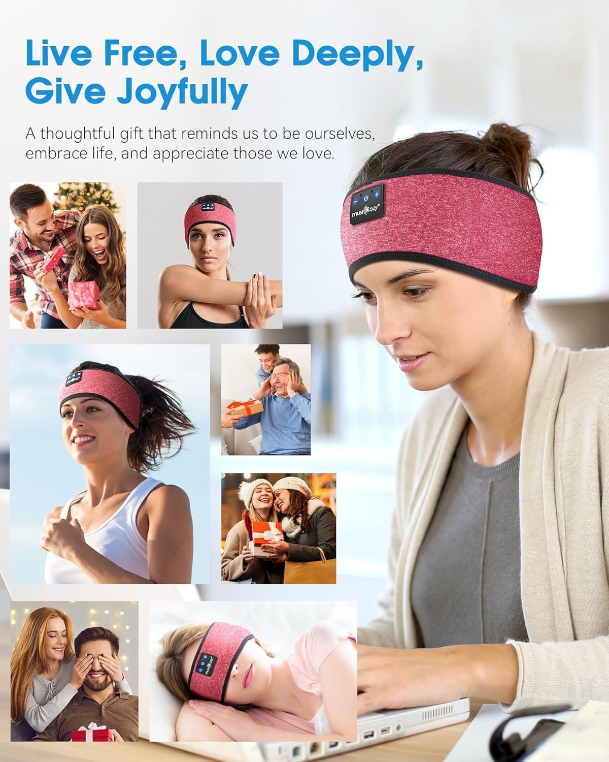 MUSICOZY Sleep Headphones Sleep Mask Bluetooth Headband Wireless Music Headband Headphones Earbuds for Side Sleepers Women Men Workout Running Cool Gadgets