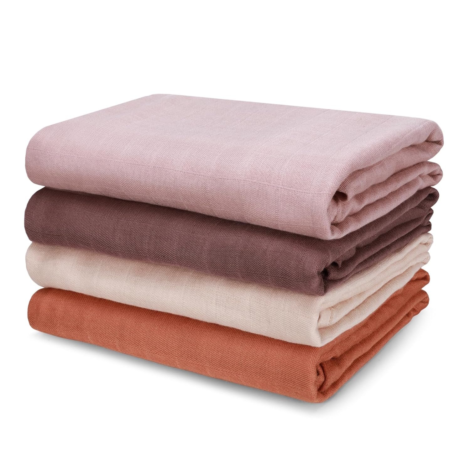 Muslin Swaddle Blankets, Large Receiving Blankets for Boys and Girls, 4-Pack Soft and Breathable Swaddle Wrap for Newborn, 47 x 47 inches (Beige Brown Series)